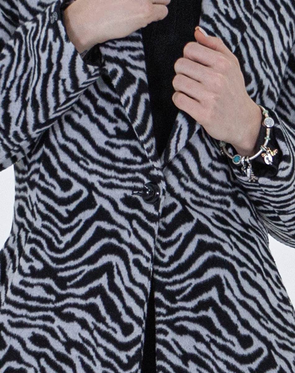 Mejora tu guardarropa con este moderno abrigo corto con un estampado único. Mantente a la moda y acogedor durante toda la temporada.