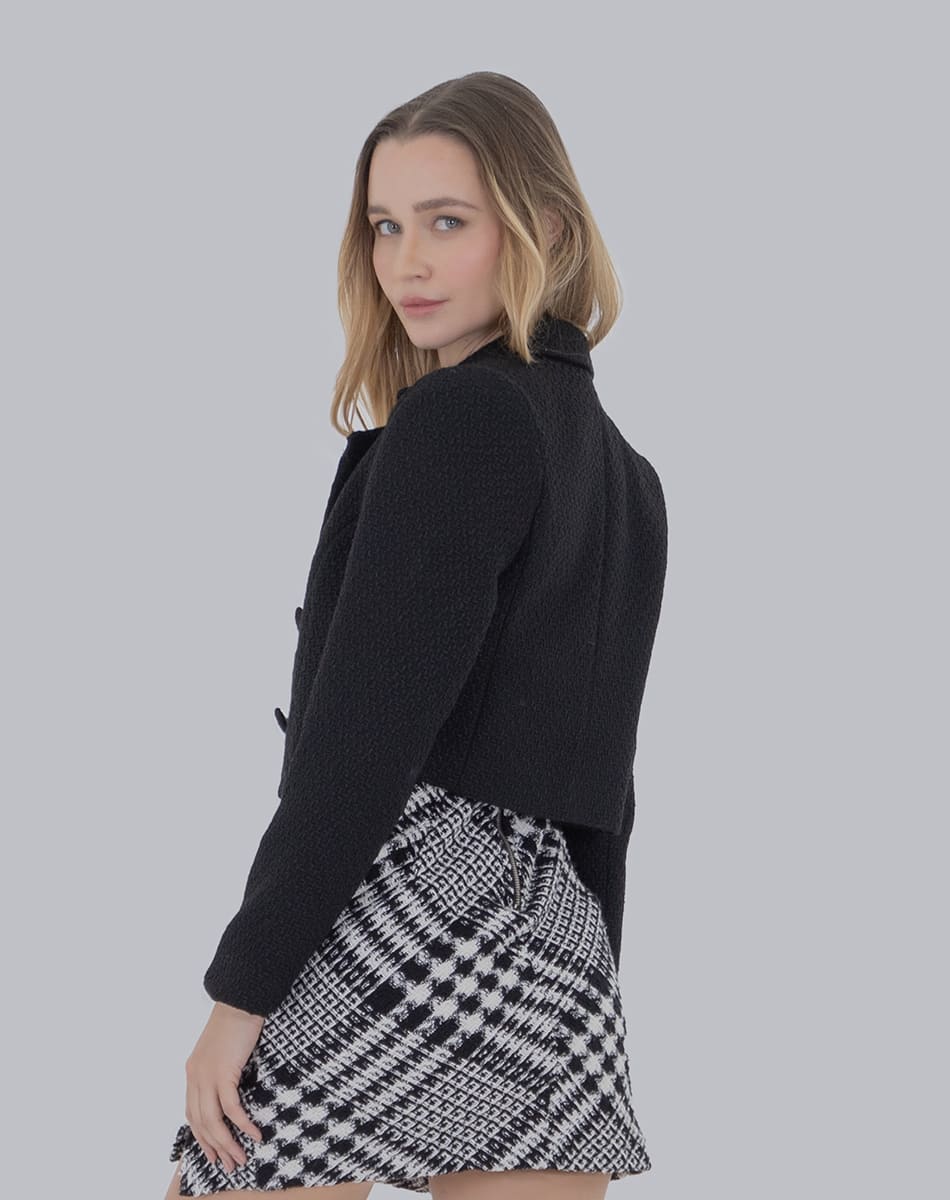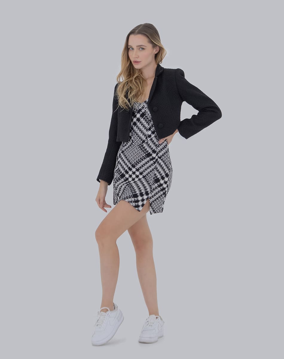 Si tienes un estilo audaz este Blazer Corto Colorido marcará la diferencia en tus atuendos. Su corte elegante y sus botones al frente forrados te garantizan un look original y lleno de energía.