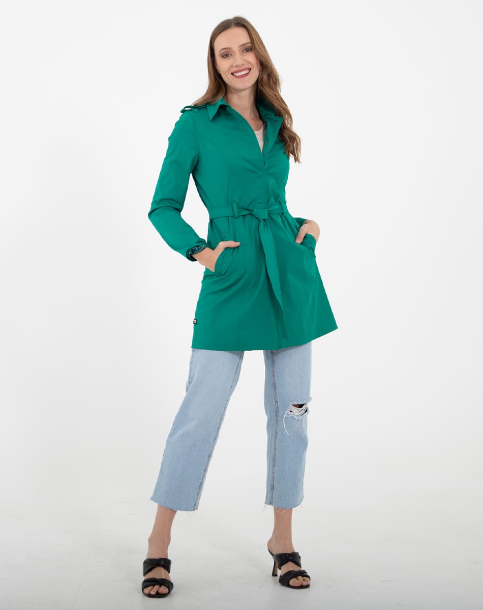 Nuestra Gabardina Tradicional con amarre es la prenda perfecta para las mujeres que buscan estilo y comodidad. Su cinturón ajustable te permitirá crear una silueta favorecedora y realzar tus curvas.