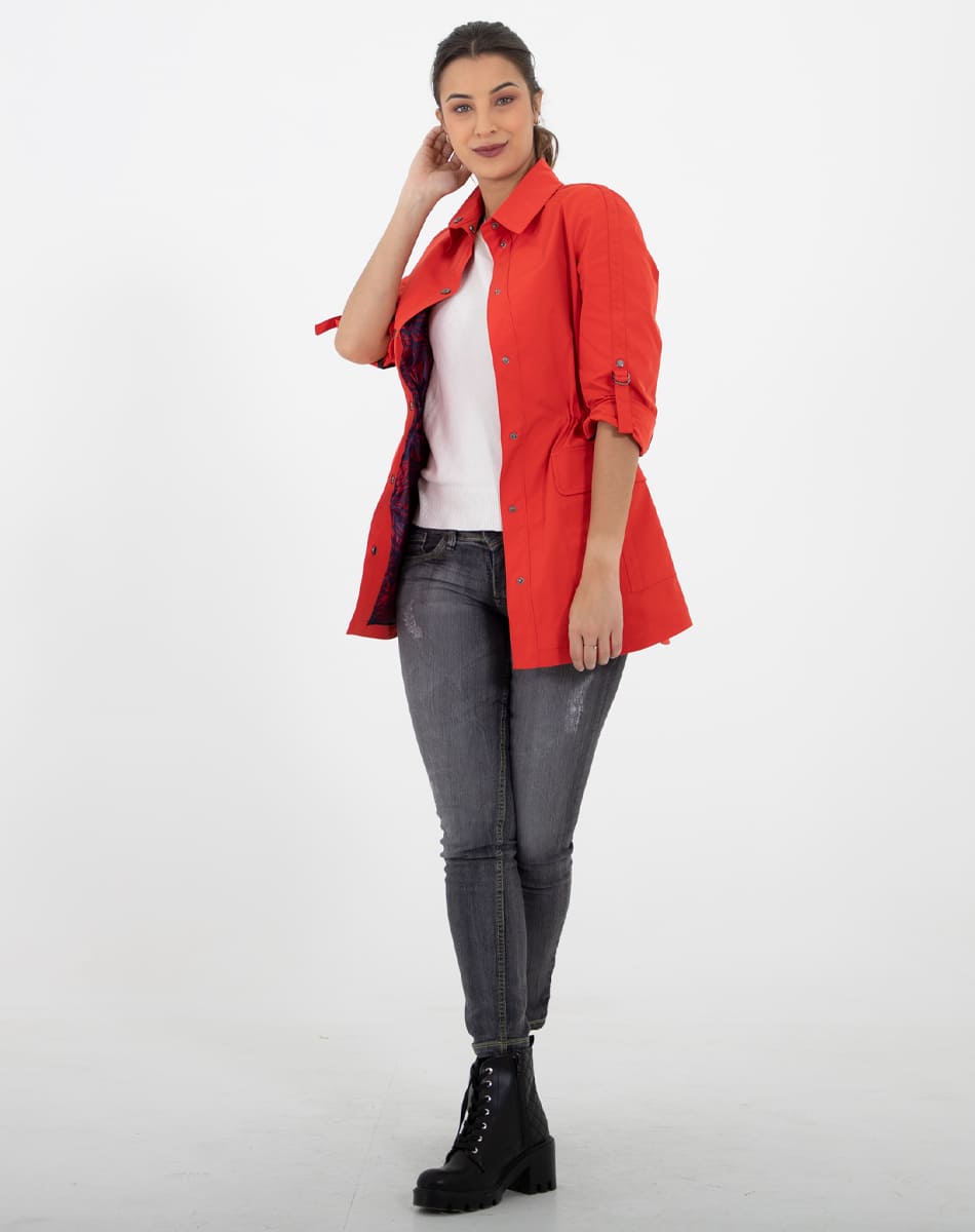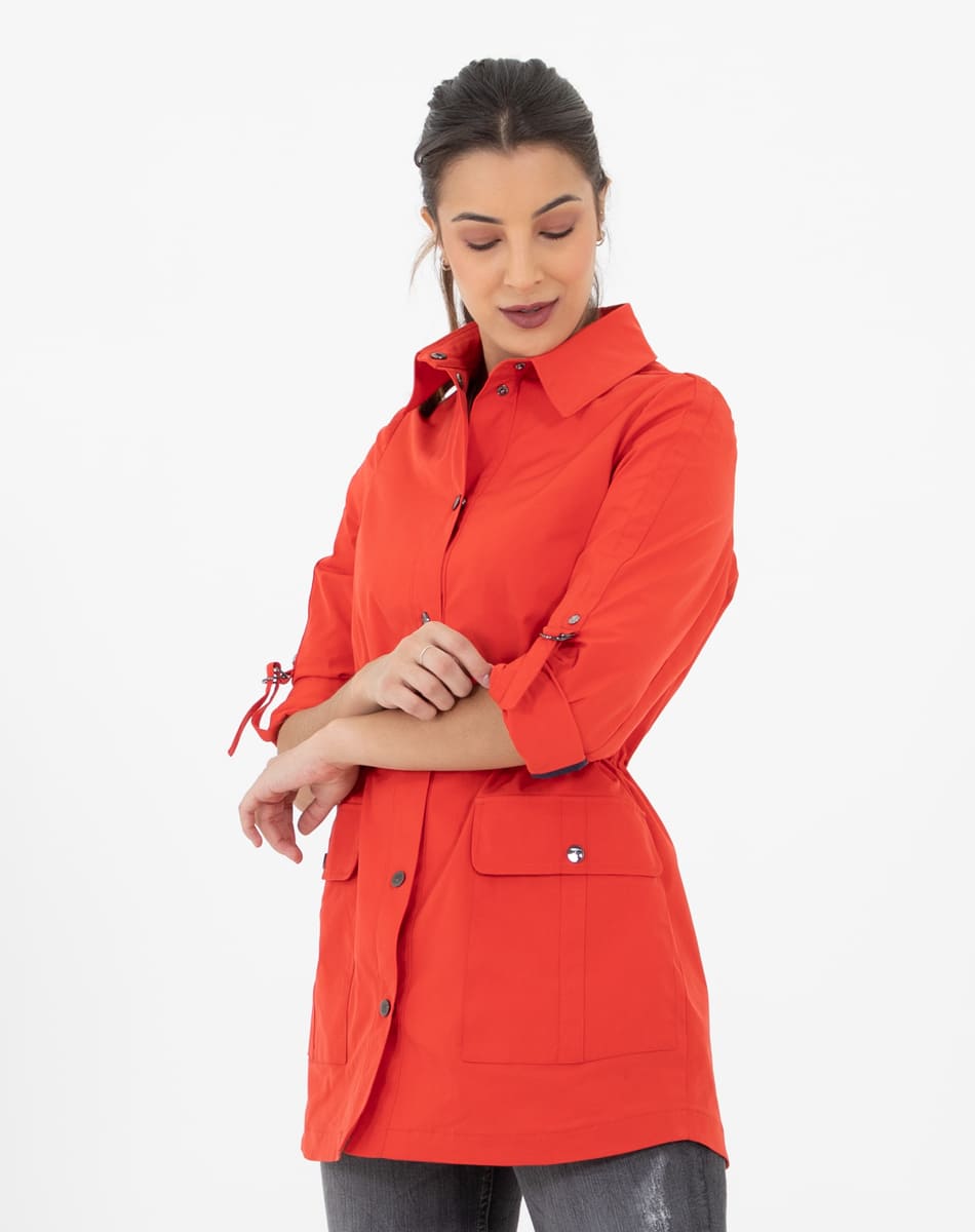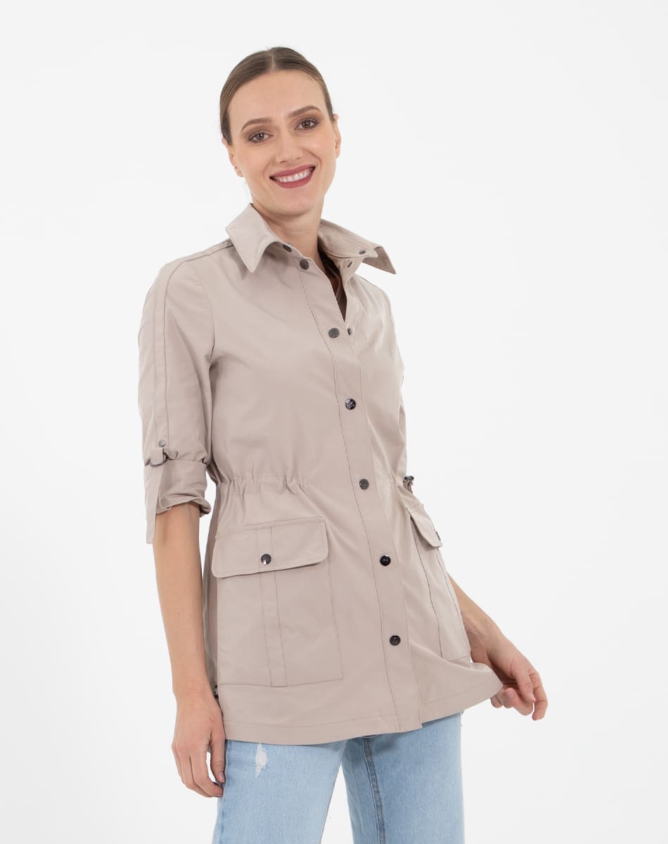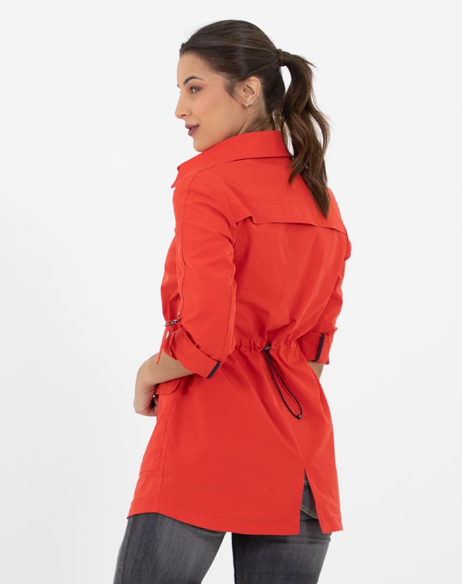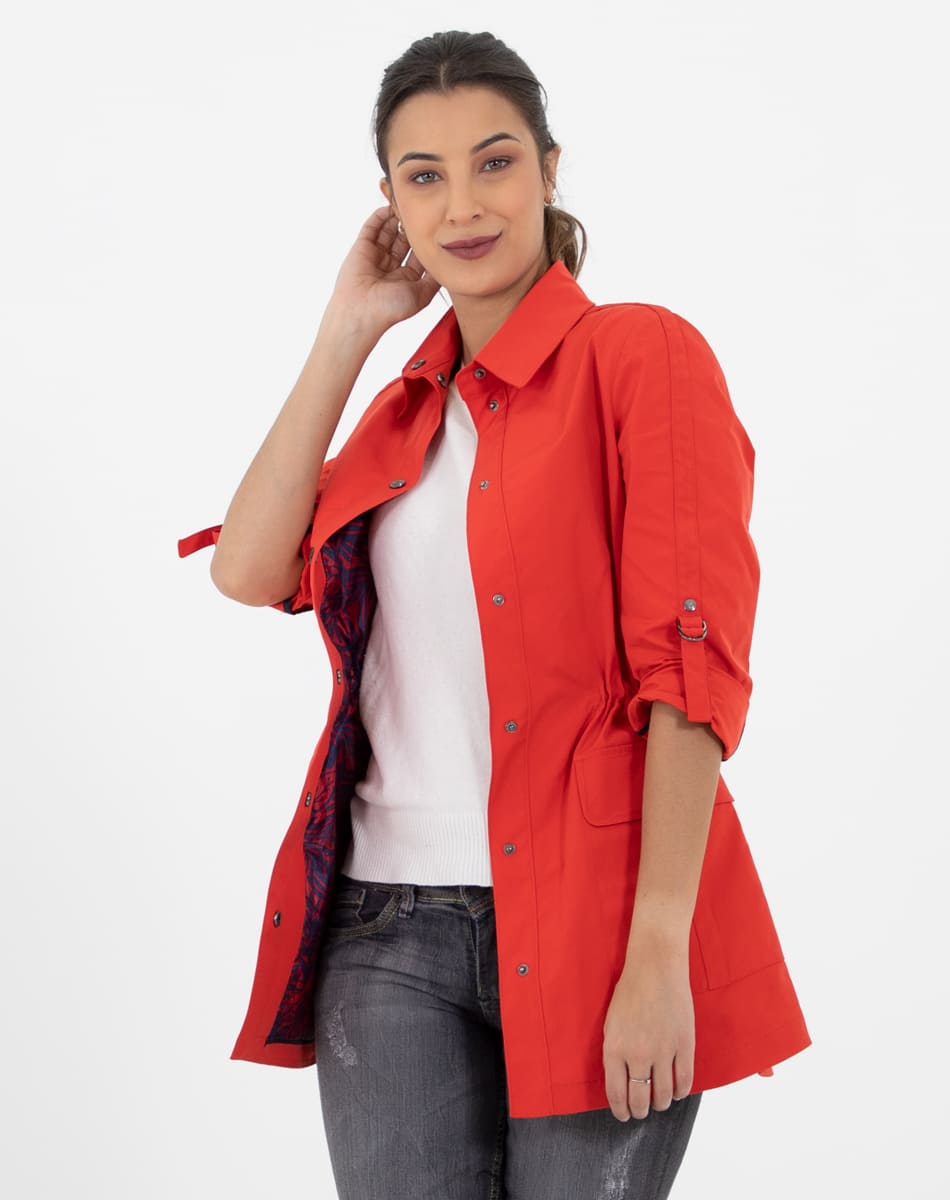 Esta Gabardina Larga casual es fácil de combinar con cualquier atuendo gracias su diseño con cuello y broches al frente.