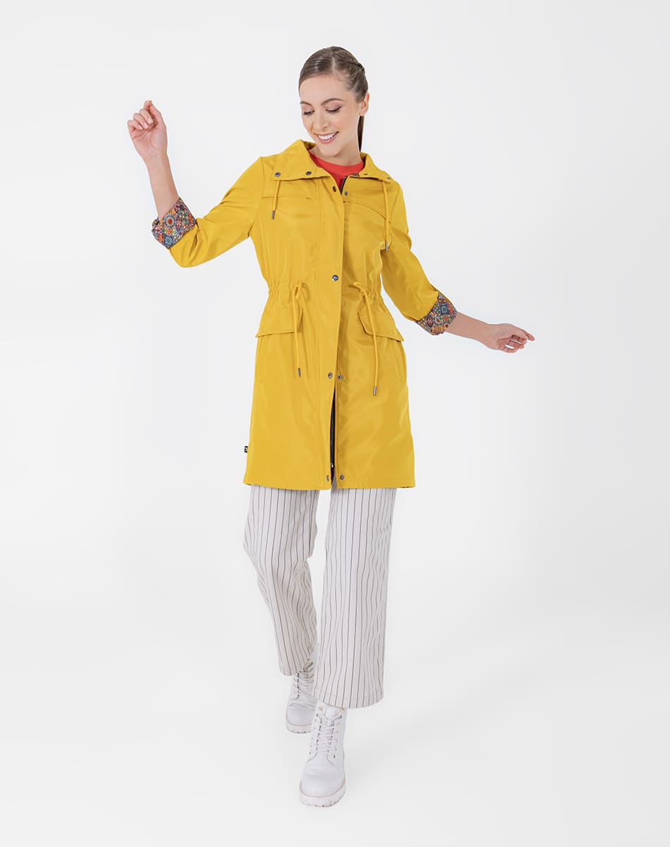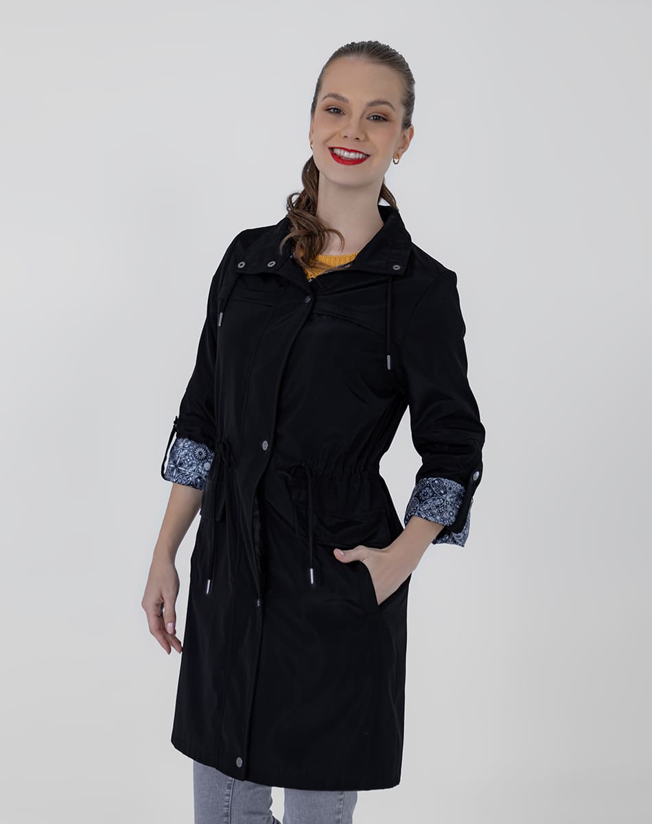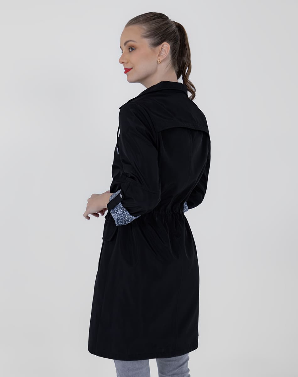 Dale un toque de estilo a tus looks sin importar el clima con nuestra Gabardina Clásica larga. Con sus seis broches al frente y dos bolsas, esta prenda es el complemento perfecto para cualquier outfit.