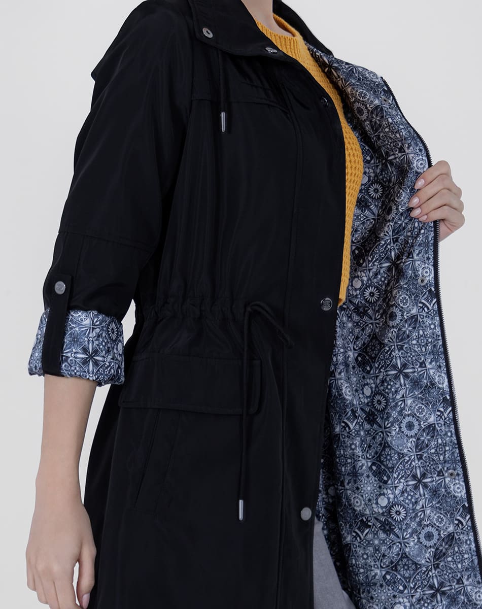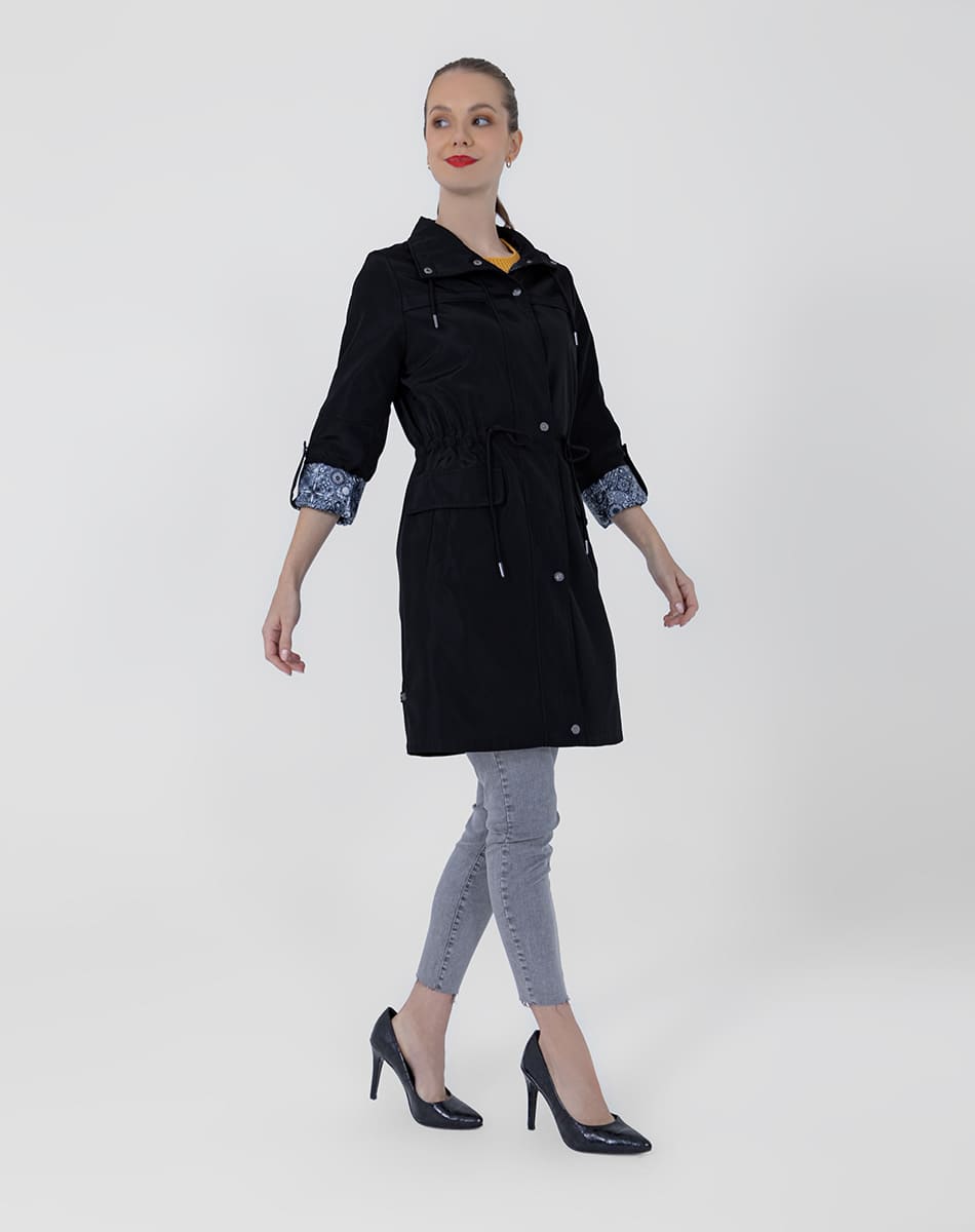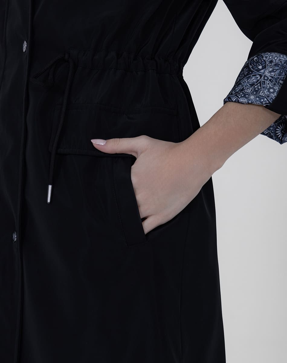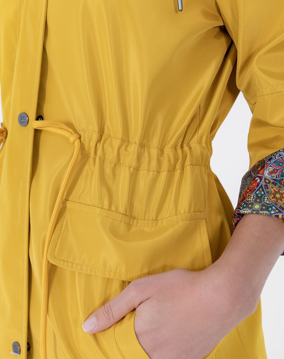Dale un toque de estilo a tus looks sin importar el clima con nuestra Gabardina Clásica larga. Con sus seis broches al frente y dos bolsas, esta prenda es el complemento perfecto para cualquier outfit.
