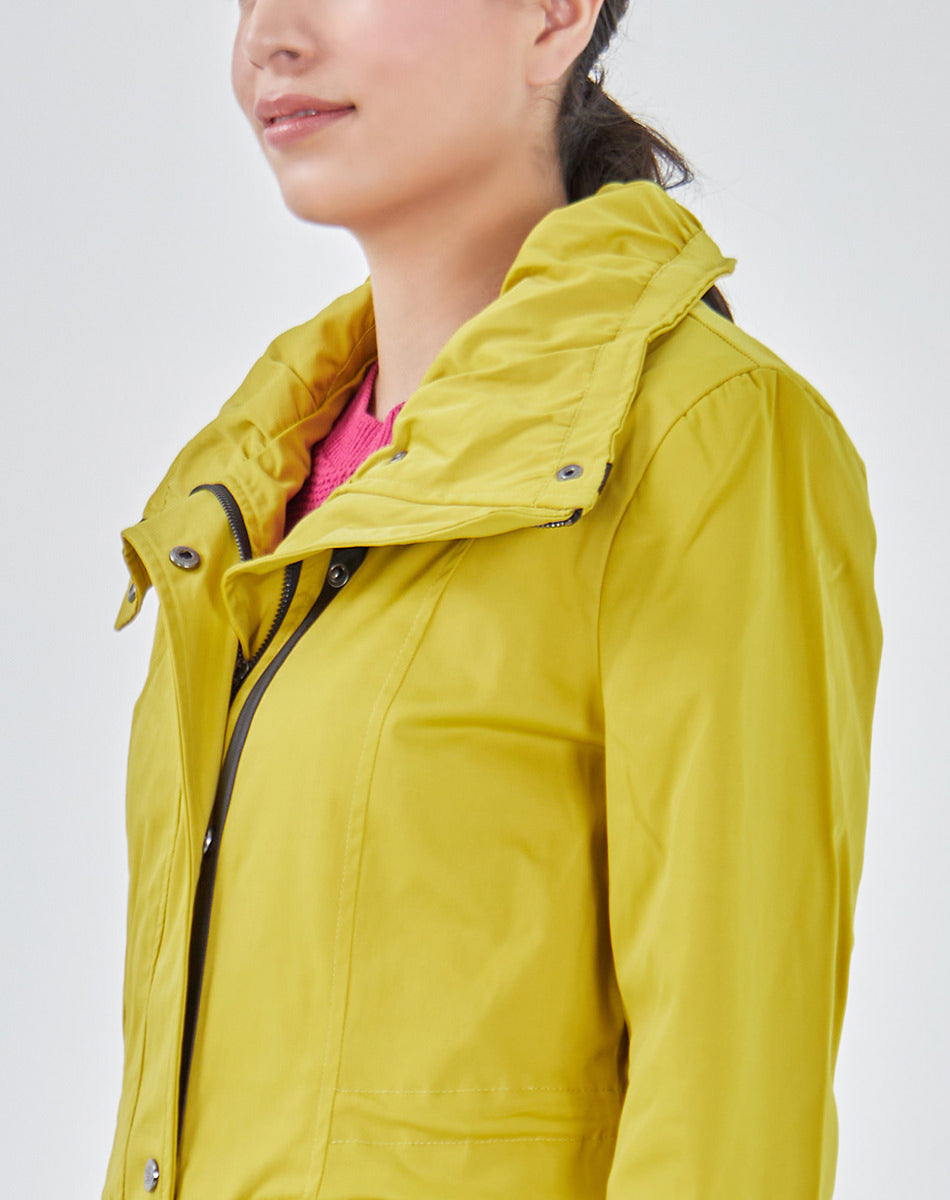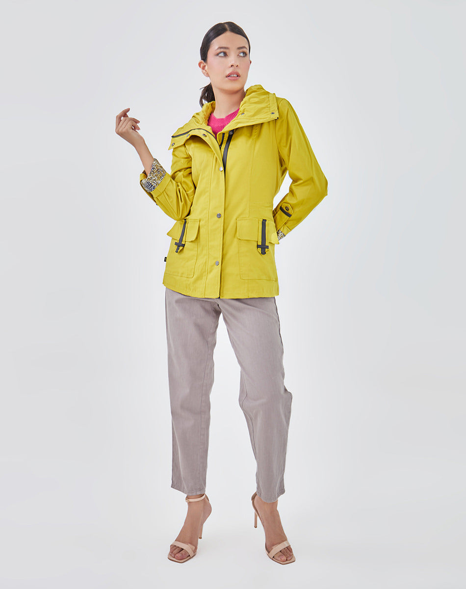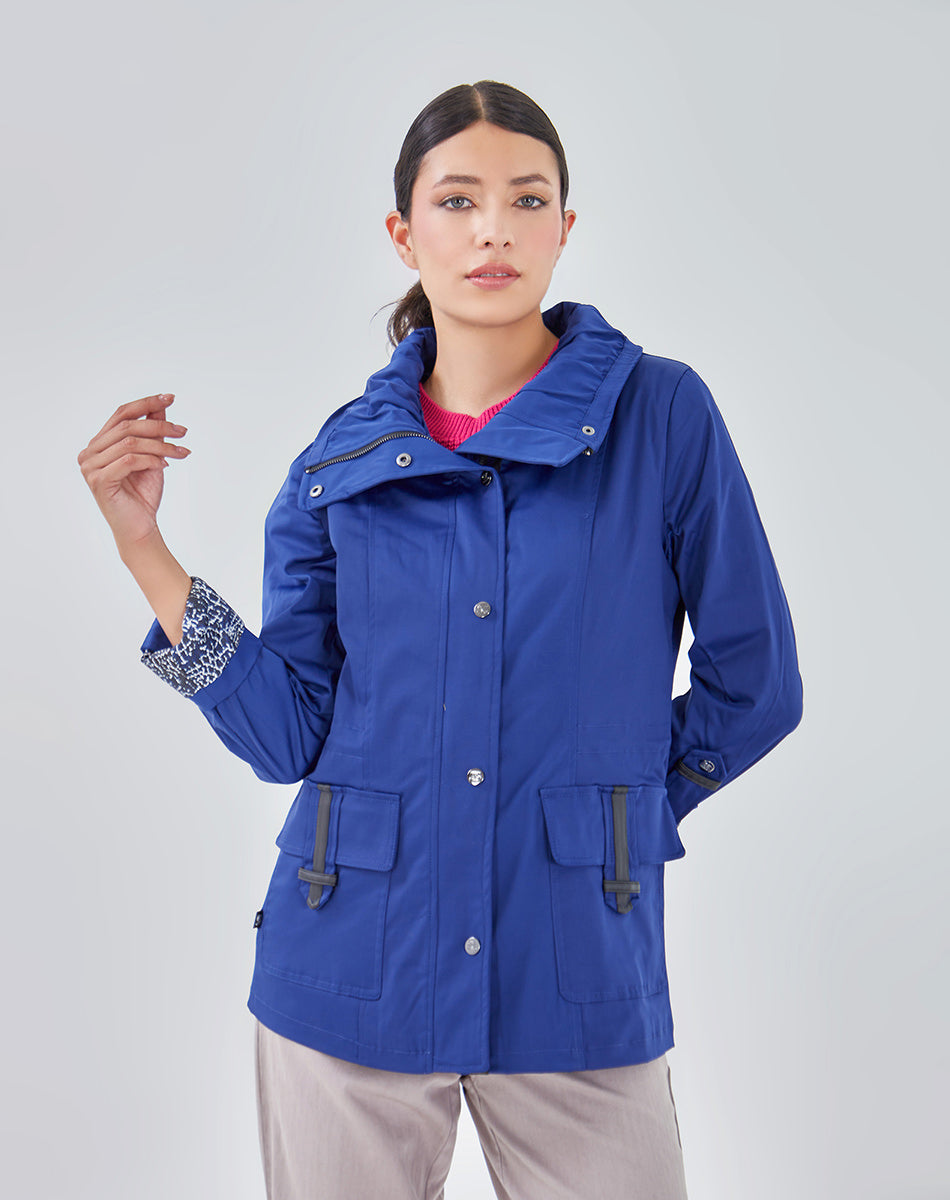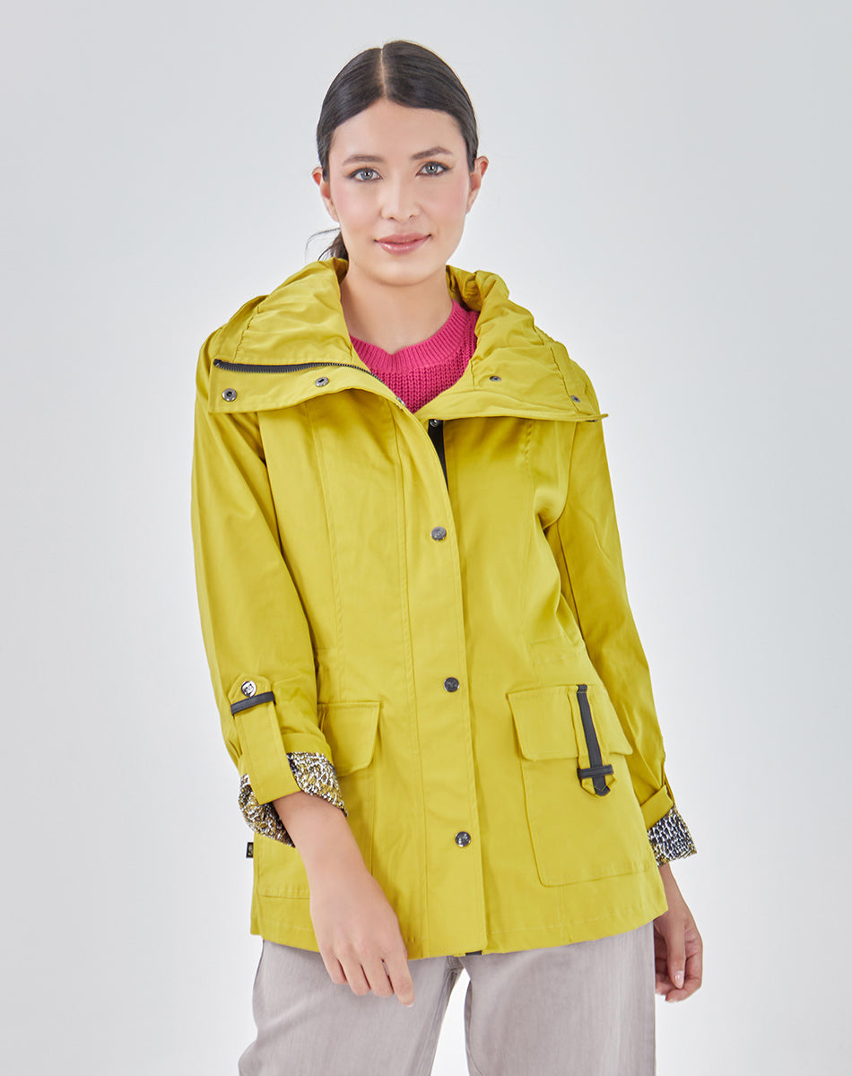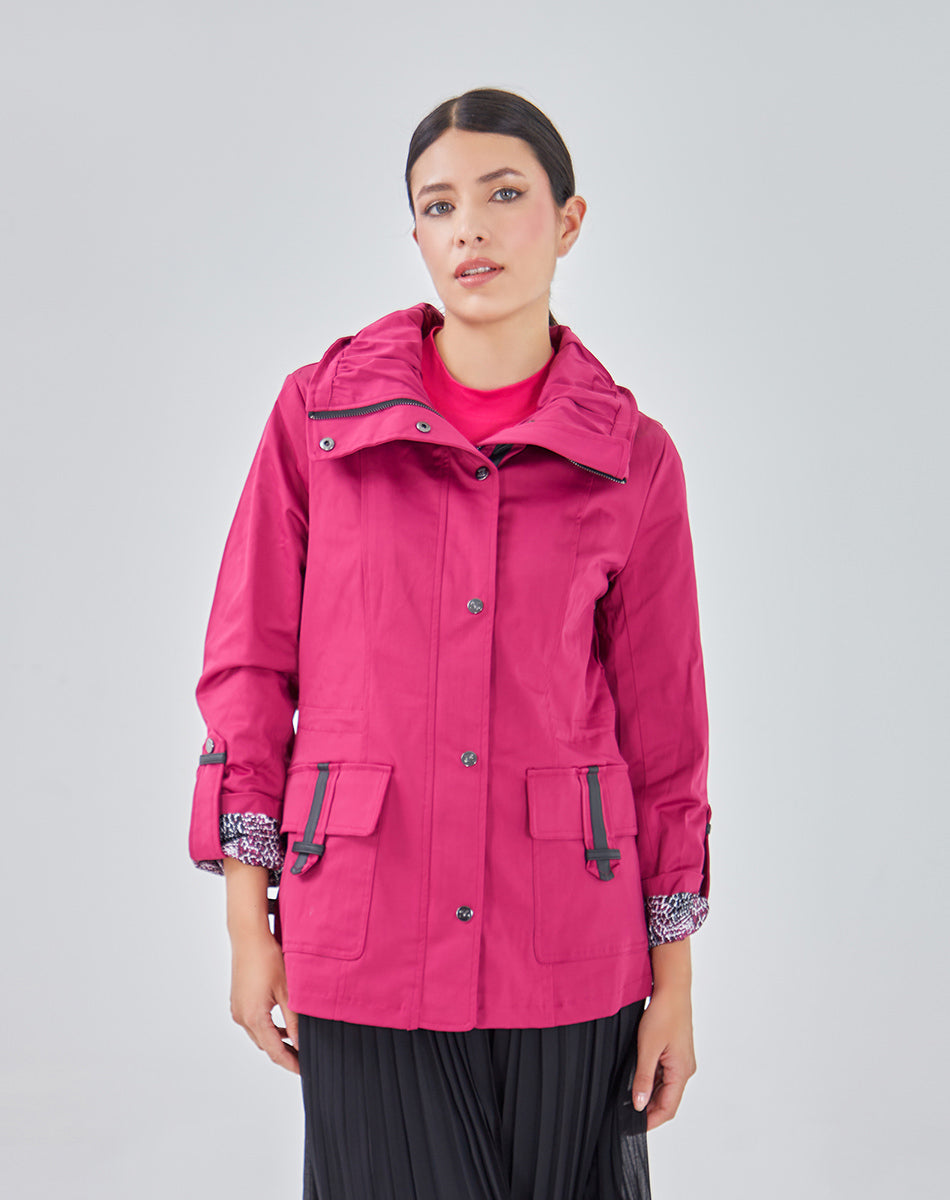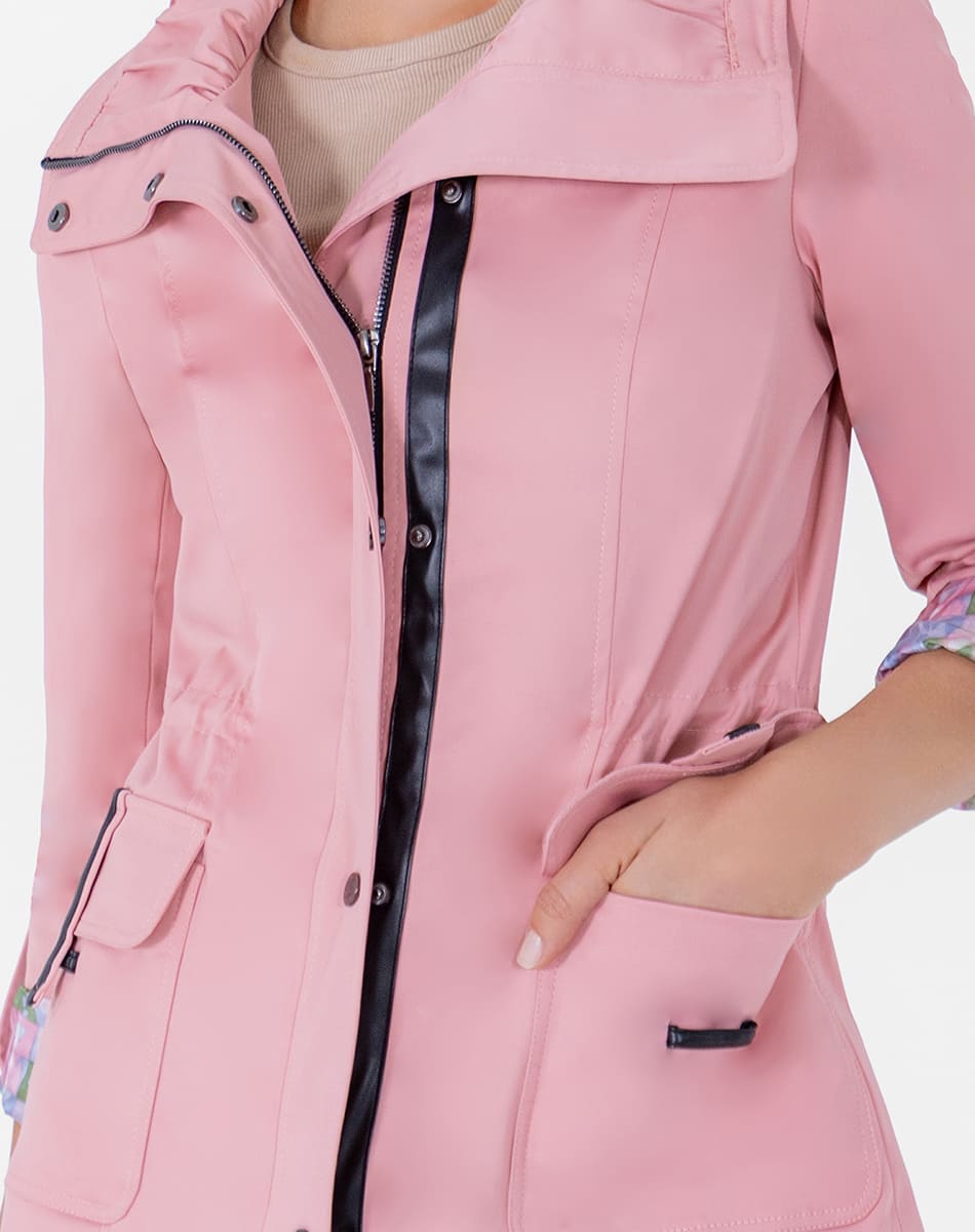 Completa tu look con estilo y sofisticación con nuestra gabardina con cuello plisado. Con broches elegantes en la parte frontal y una jareta ajustable en la cintura, esta gabardina te ofrece un ajuste personalizado y favorecedor.