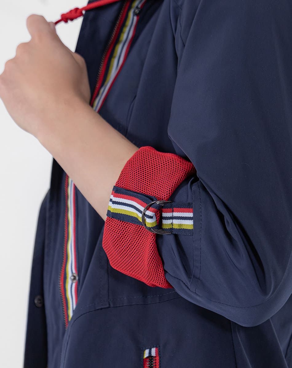 Gabardina larga con capucha manga remangada