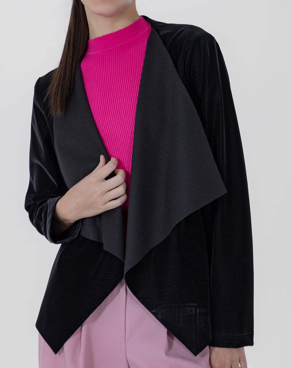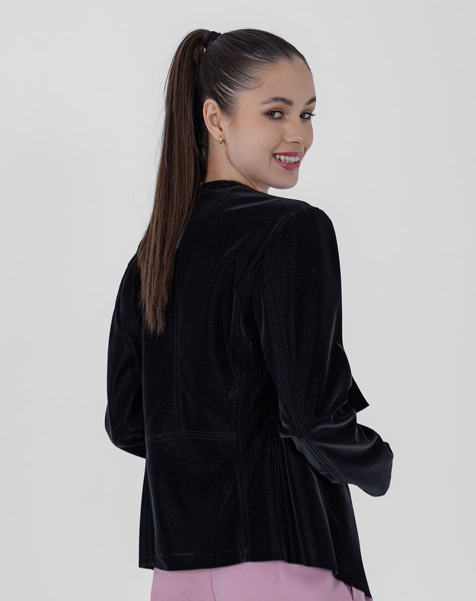 Nuestro Suede suave y lujoso en color negro con un grabado distintivo, aporta el estilo y sofisticación que buscas en cualquier look