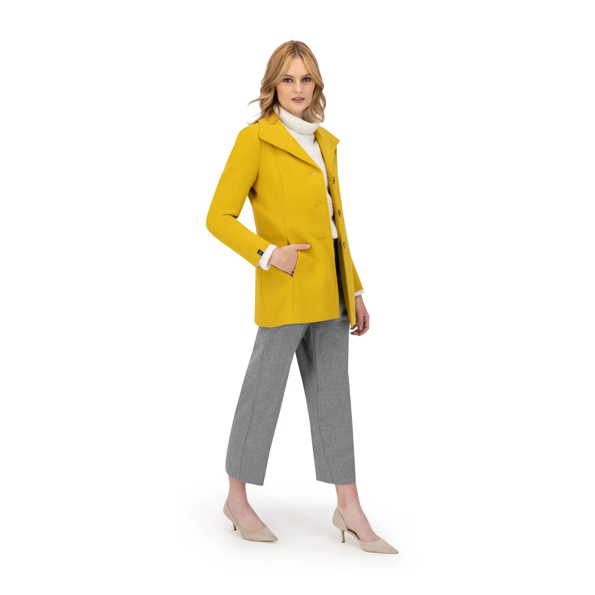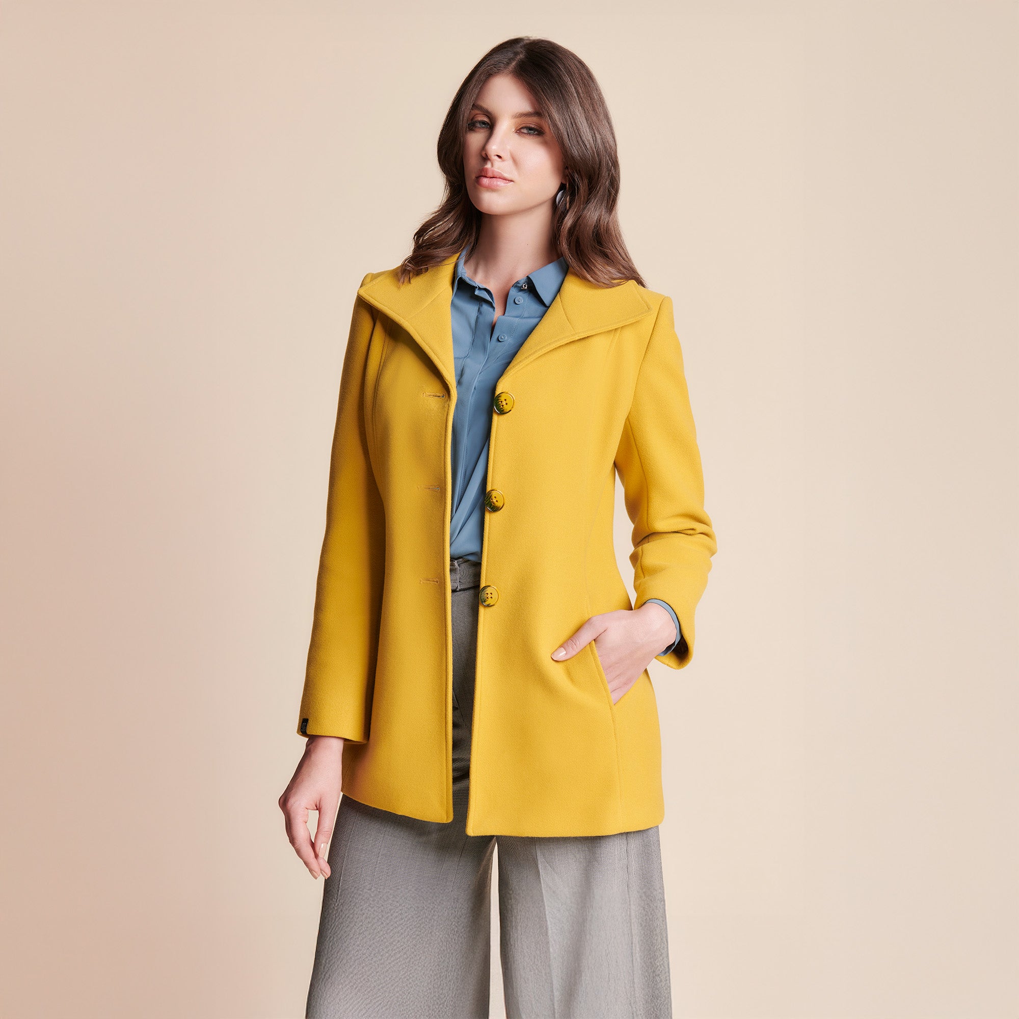 Este abrigo de mujer es una pieza imprescindible para quienes buscan estilo y funcionalidad en su guardarropa. Su corte recto y solapa amplia aportan estructura, mientras que los botones frontales añaden un toque clásico que realza cualquier look.