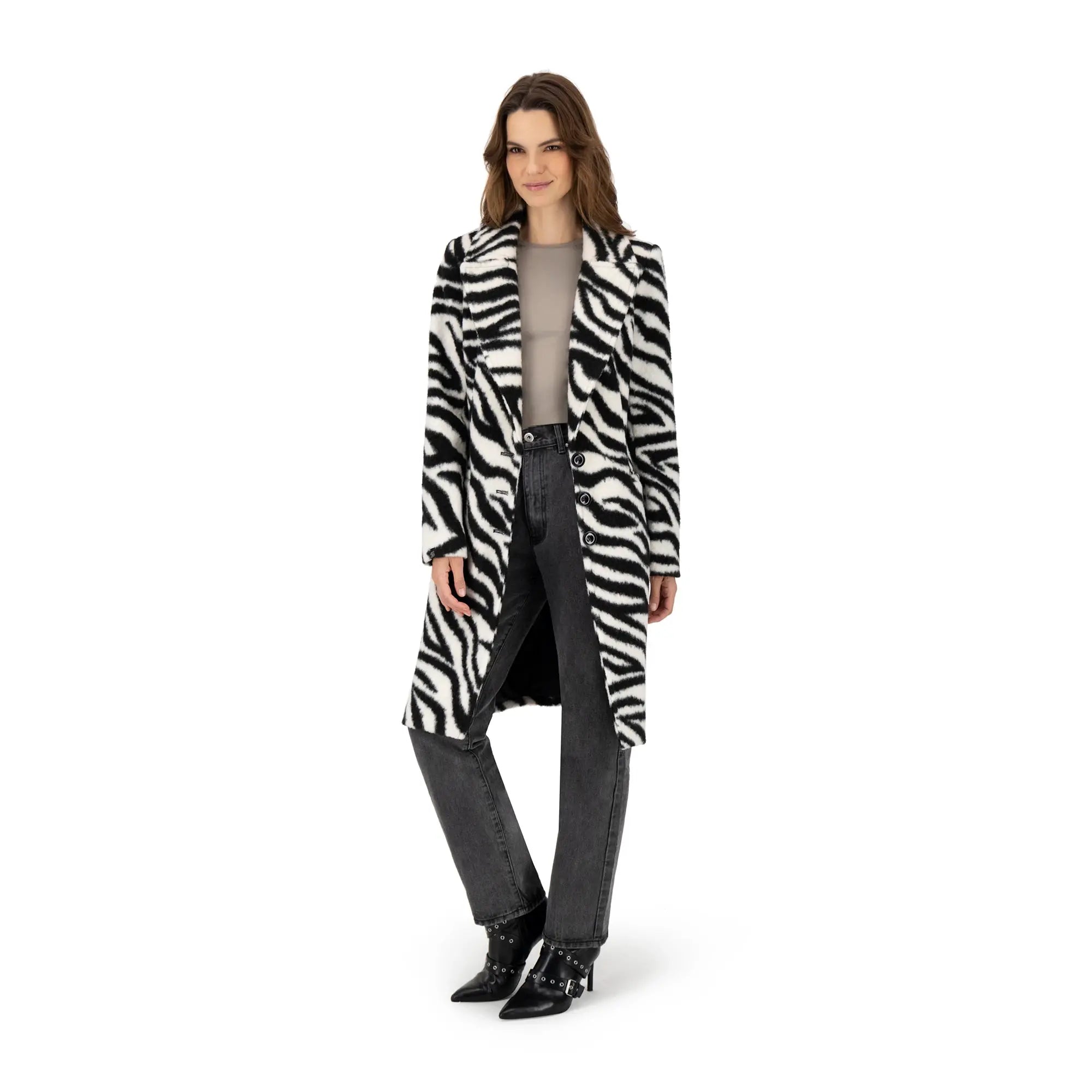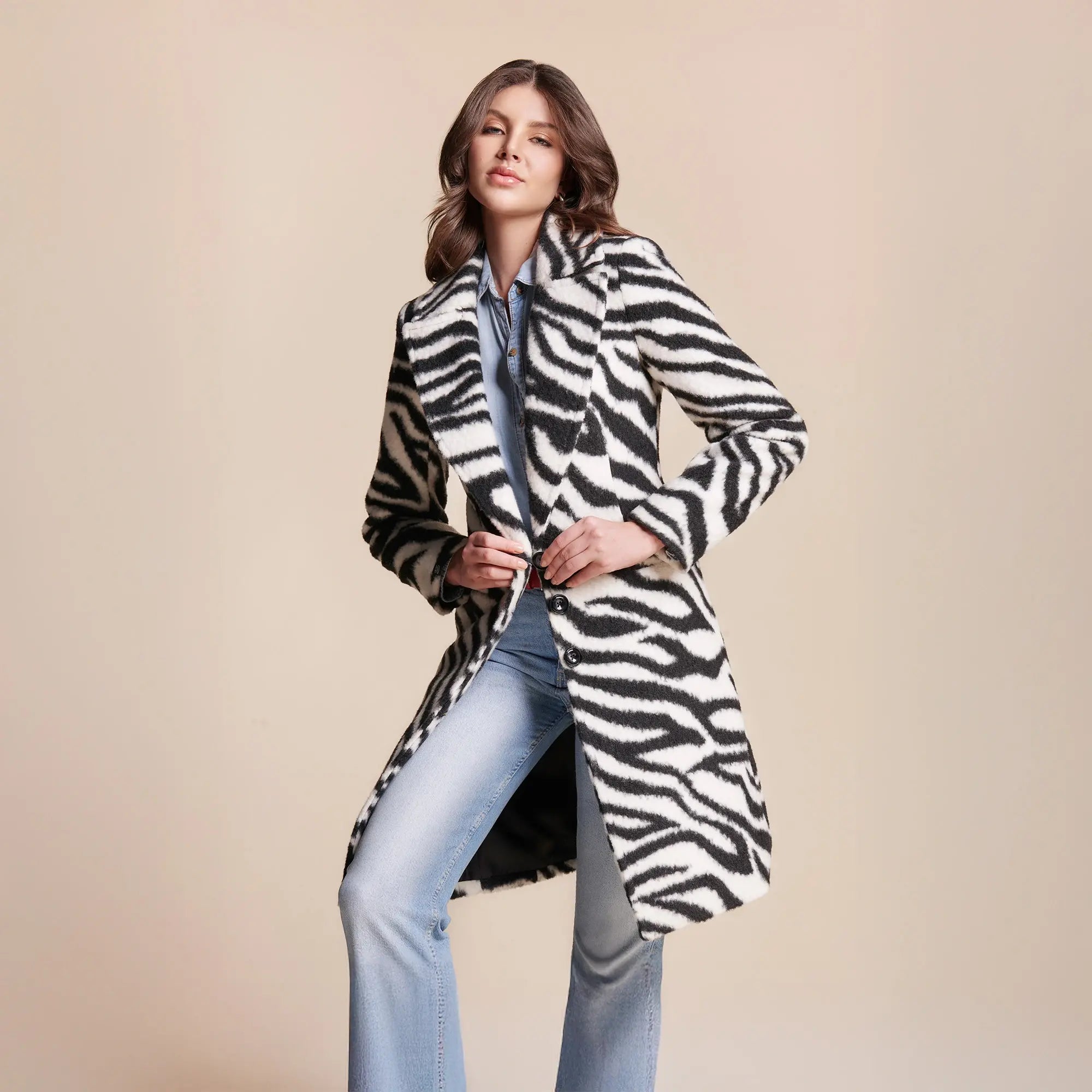 Abrigo Estampado Con Solapa Ancha