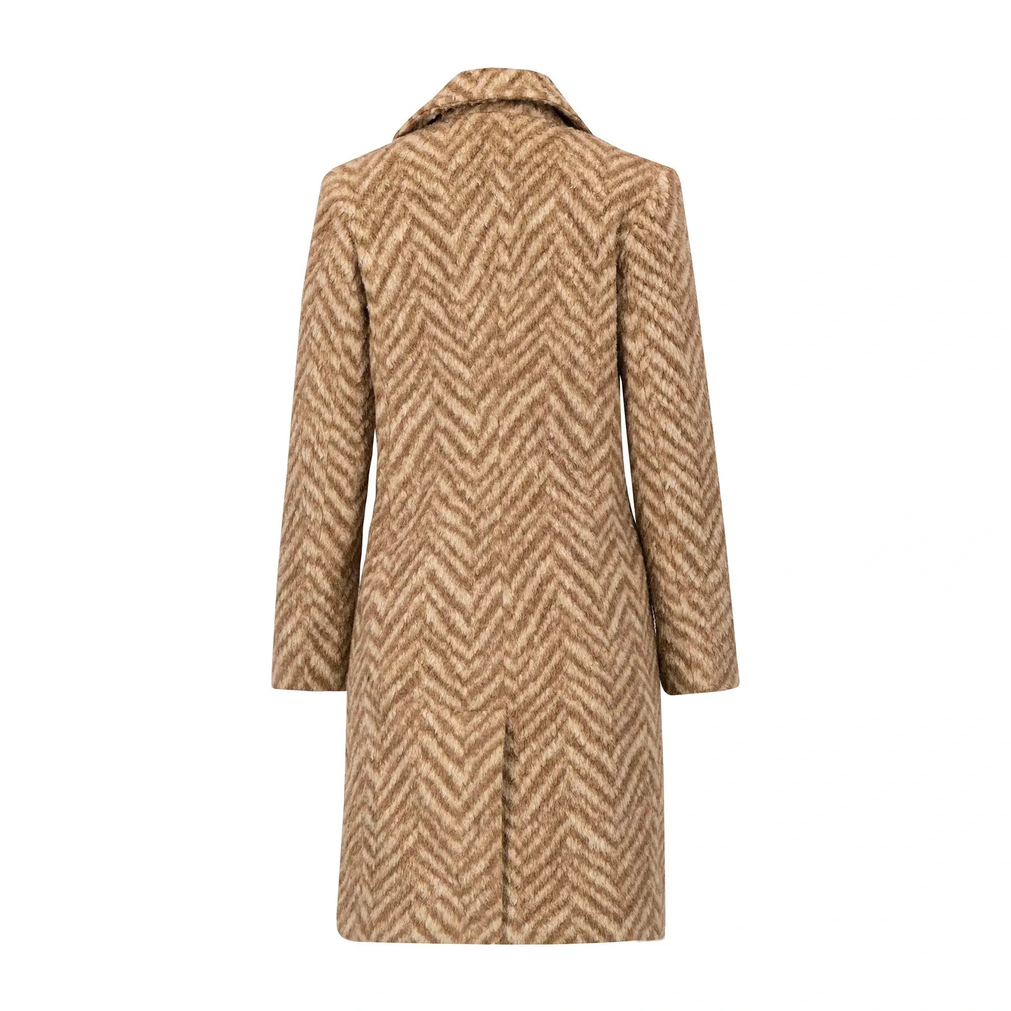 Este abrigo presenta un diseño de espiga clásico que une sofisticación y confort. Su silueta recta y cierre frontal con botones destacan un estilo tradicional, mientras que su tejido cálido garantiza comodidad durante todo el día. Ideal para realzar desde atuendos formales de trabajo hasta estilos casuales con un toque elegante.
