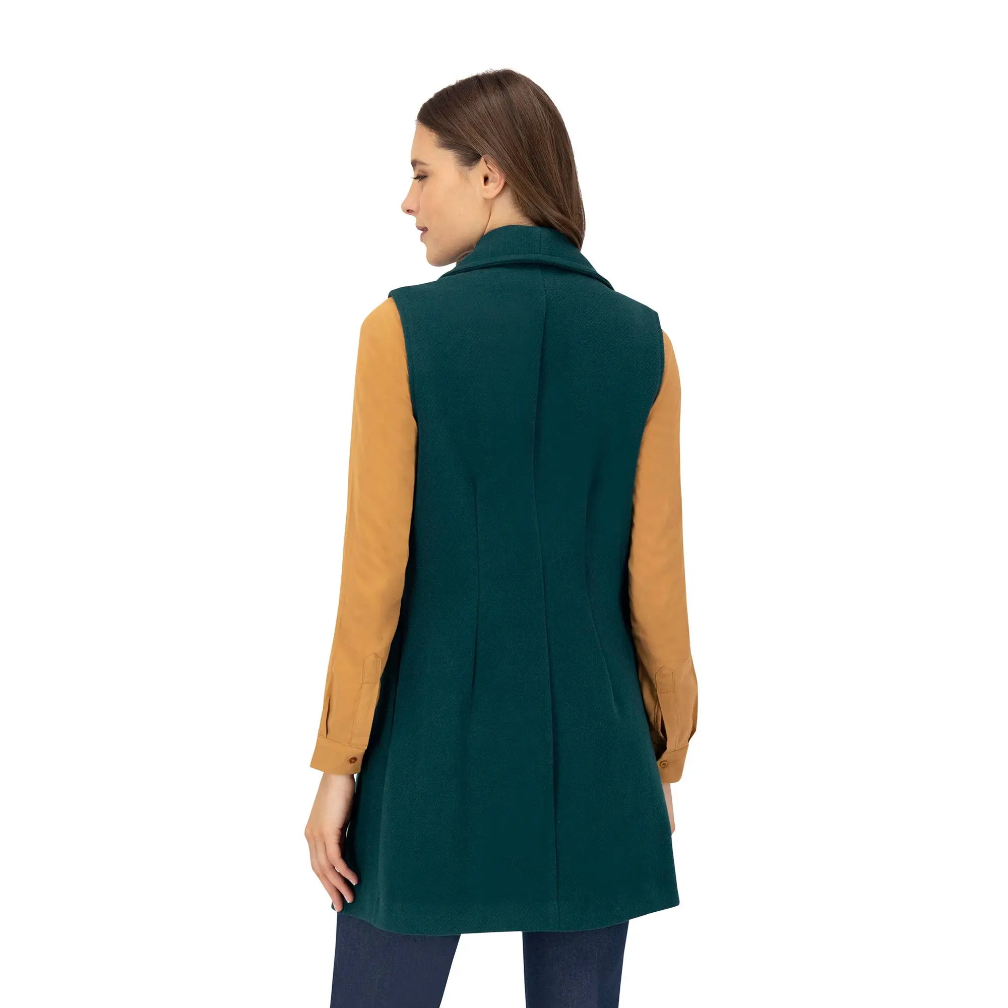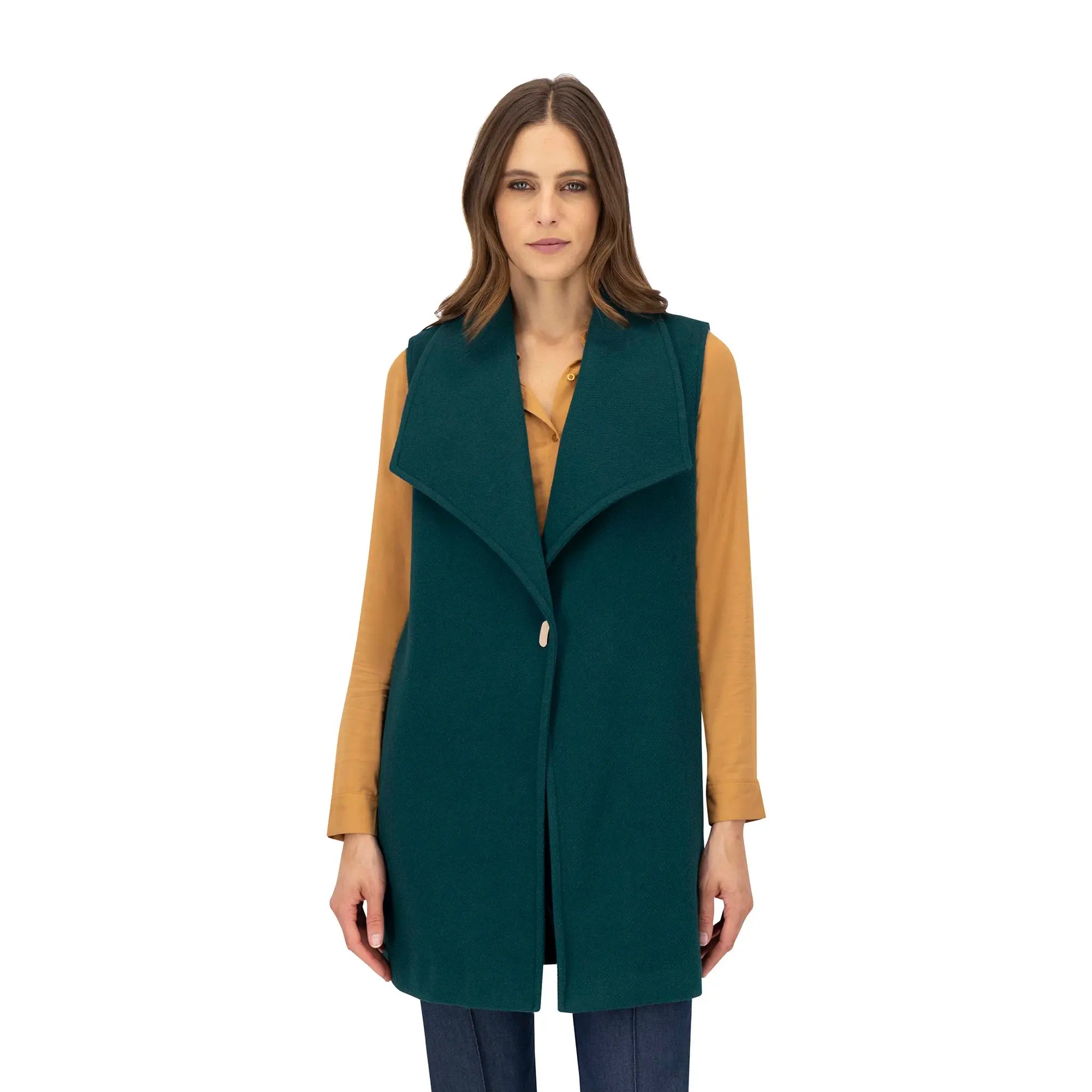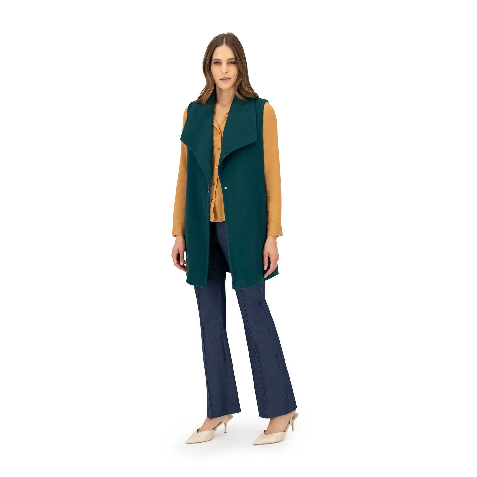 Este chaleco largo se presenta como una pieza esencial en la construcción de un guardarropa contemporáneo. Su silueta recta y la solapa amplia aportan una estructura impecable que eleva cualquier conjunto con naturalidad. Diseñado para integrarse sin esfuerzo en diferentes estilos, combina la sobriedad de una prenda atemporal con la versatilidad que exige la vida moderna. Un básico de carácter único que transforma lo cotidiano en sofisticado.