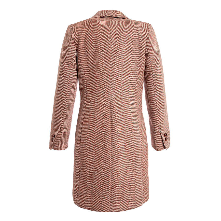 La textura distintiva de nuestro abrigo aporta un elemento visual único, mientras que el diseño de cruce suelto y el cuello V ofrecen una silueta contemporánea y cómoda.