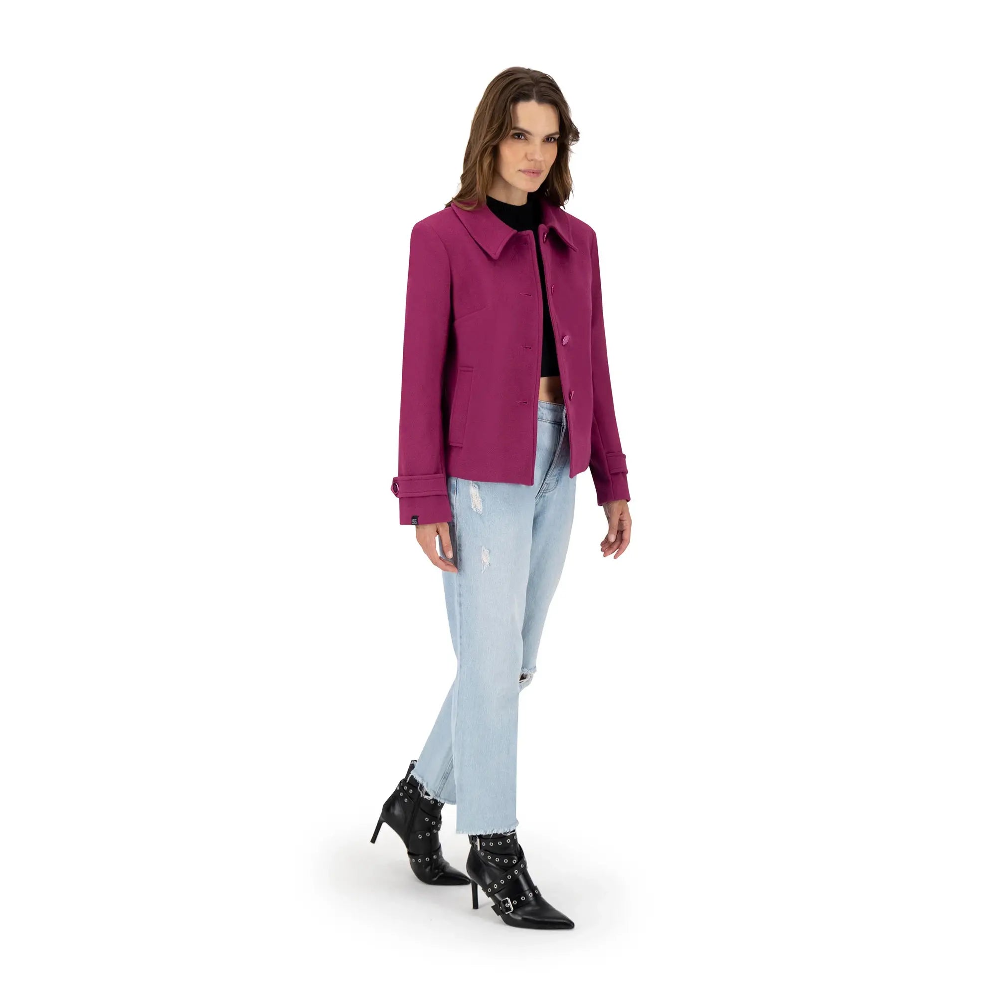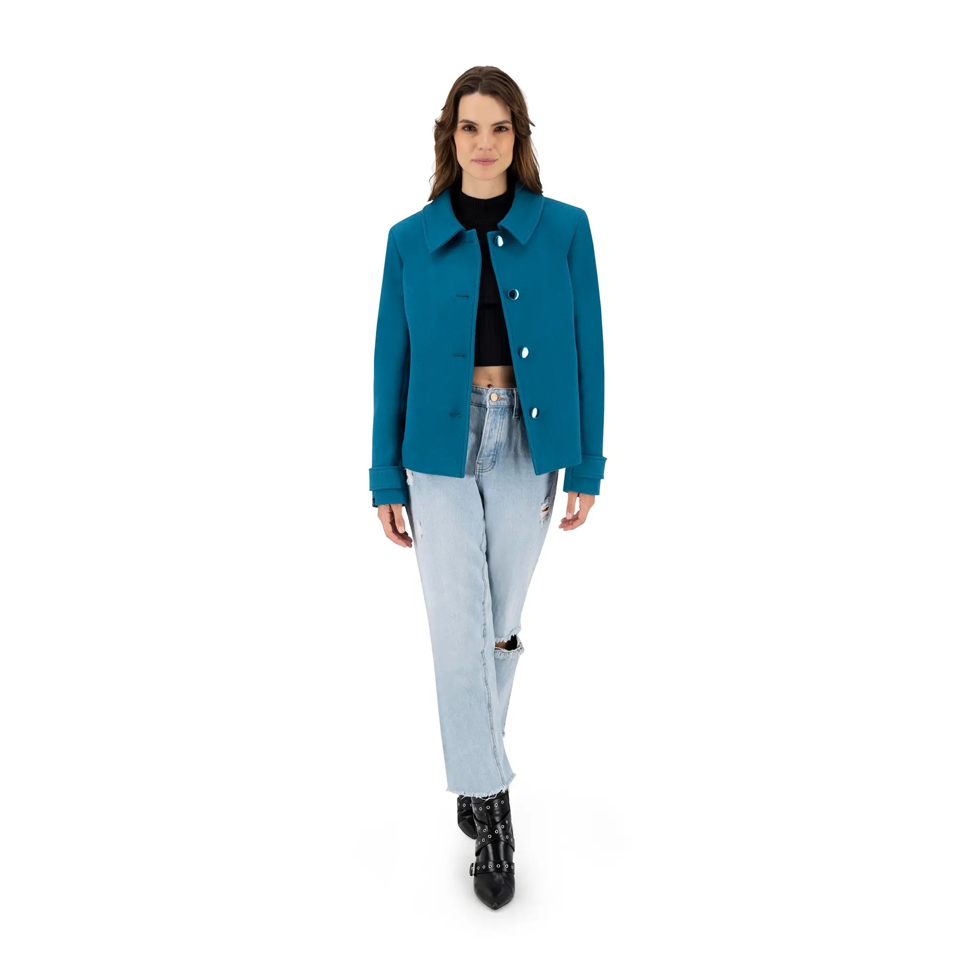 Este abrigo corto combina estilo y practicidad de manera ideal. Su cuello camisero ofrece un detalle clásico y elegante, mientras que los botones frontales brindan un cierre impecable. Perfecto para complementa tanto atuendos formales como casuales, esta prenda es la opción perfecta para añadir sofisticación y confort a tu vestuario.