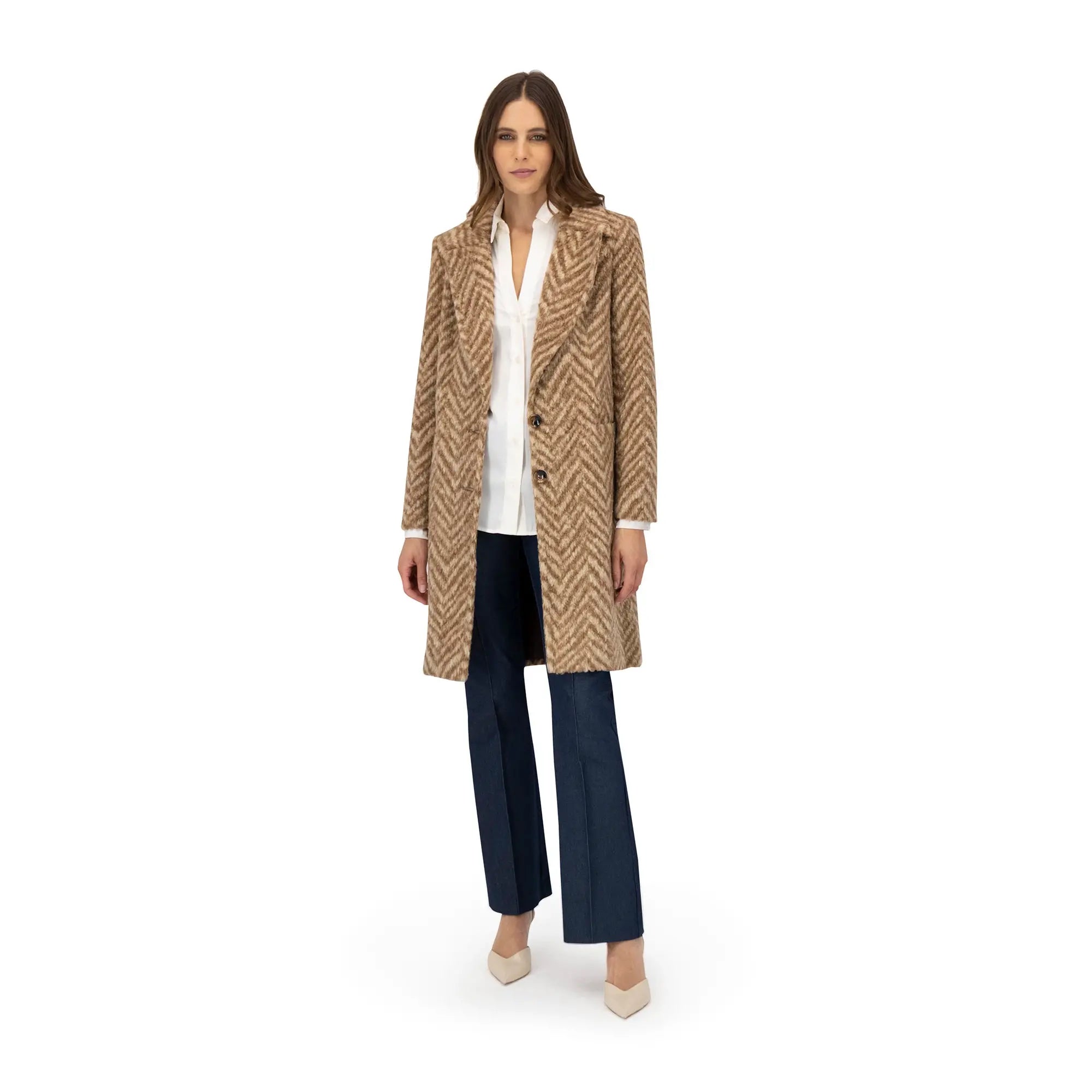Este abrigo presenta un diseño de espiga clásico que une sofisticación y confort. Su silueta recta y cierre frontal con botones destacan un estilo tradicional, mientras que su tejido cálido garantiza comodidad durante todo el día. Ideal para realzar desde atuendos formales de trabajo hasta estilos casuales con un toque elegante.