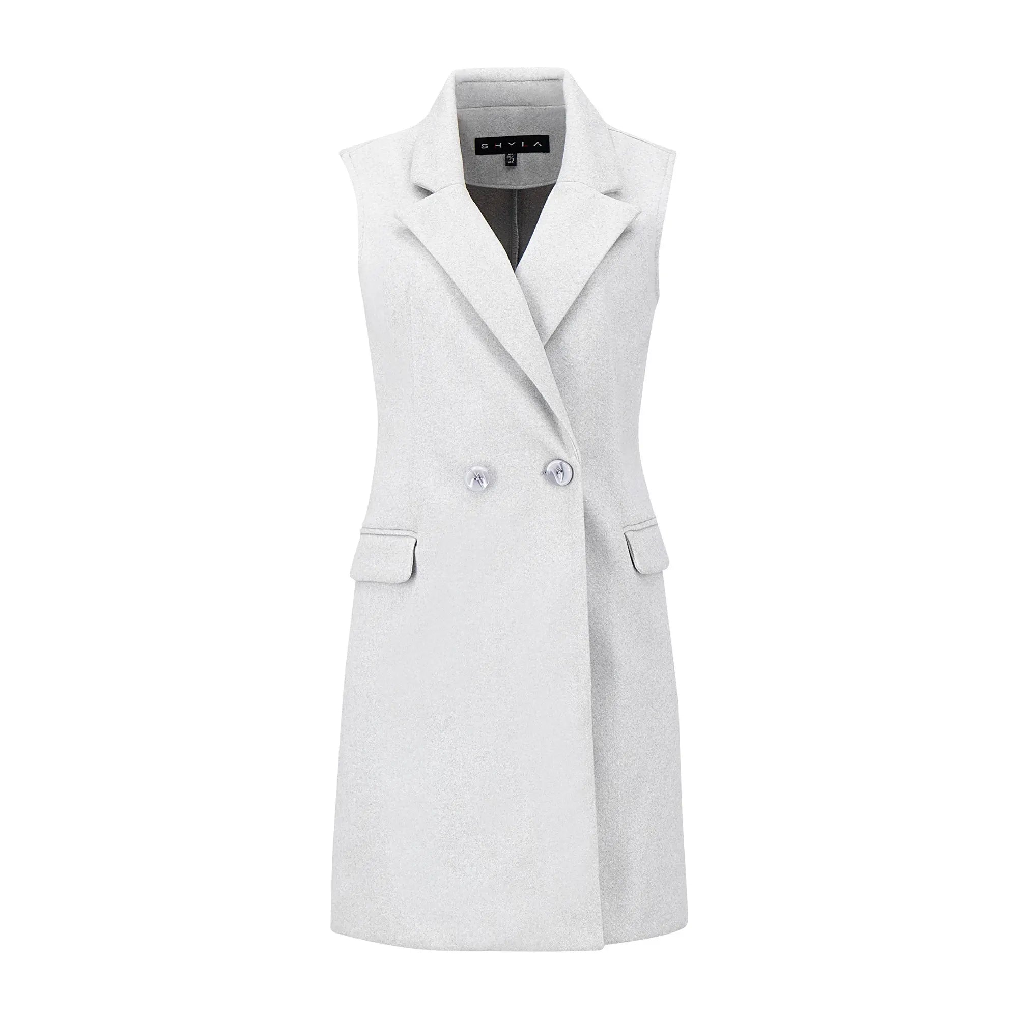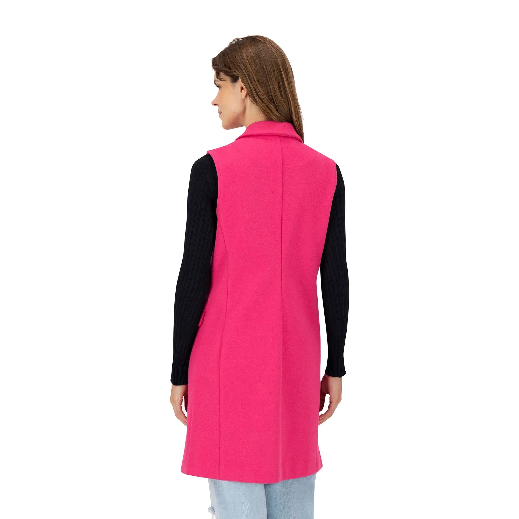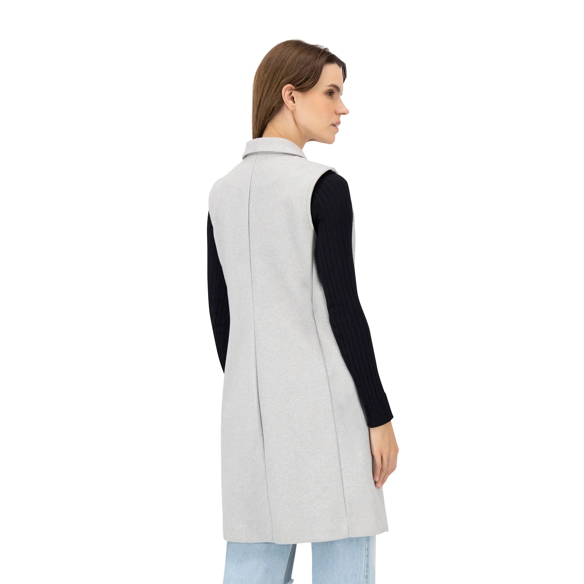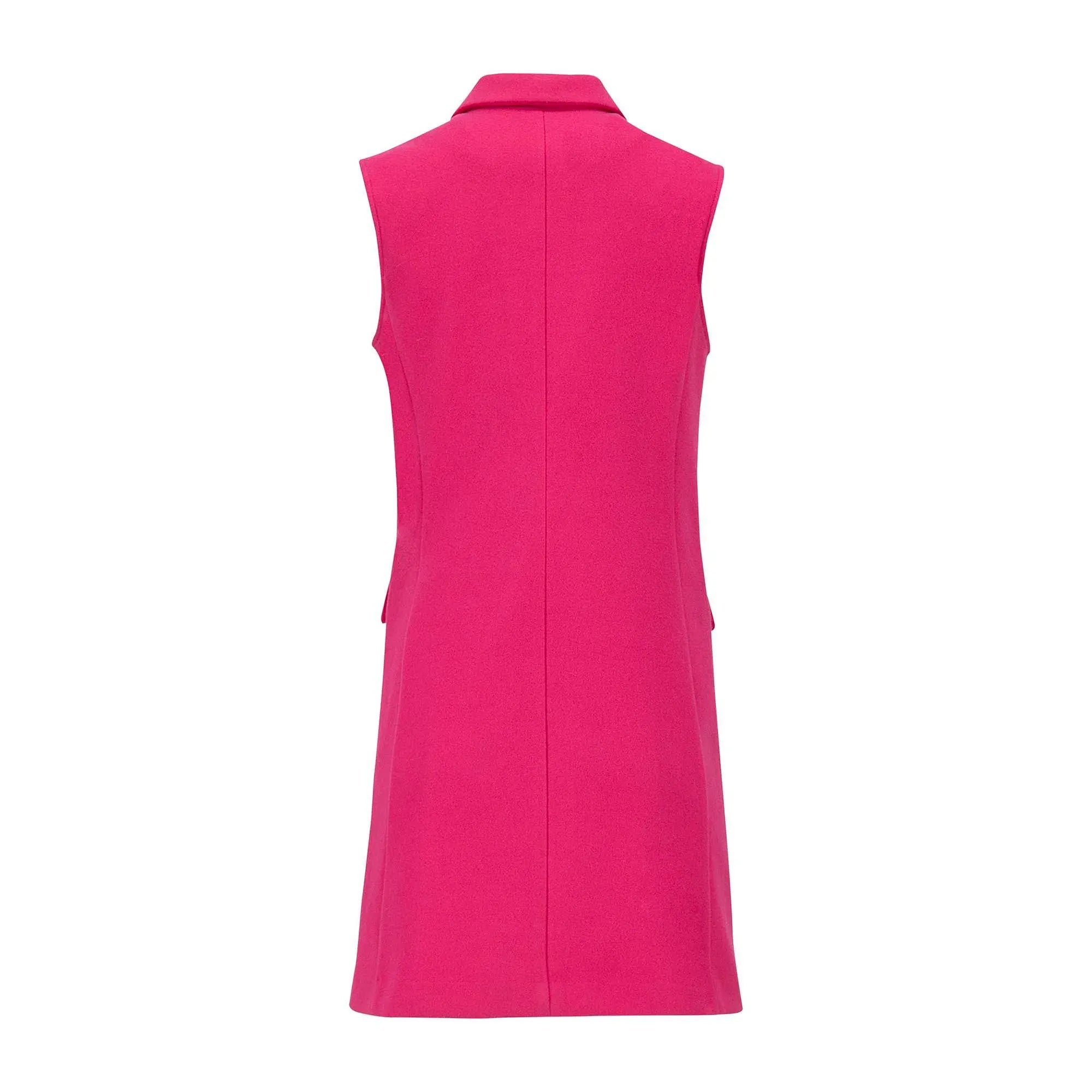 Chaleco largo con solapa clásica y cierre de un botón. Su silueta moderna y sin mangas aporta frescura y estilo.