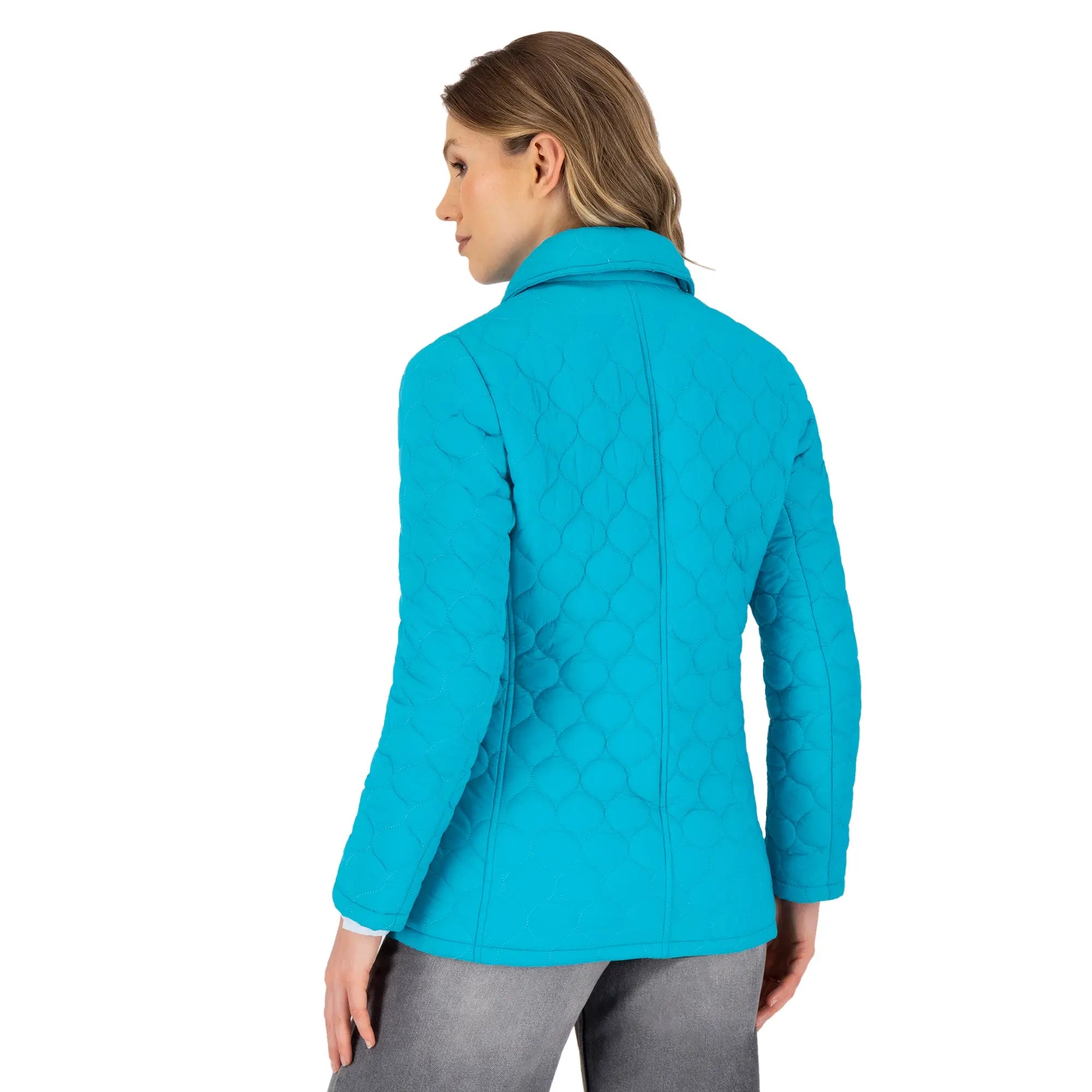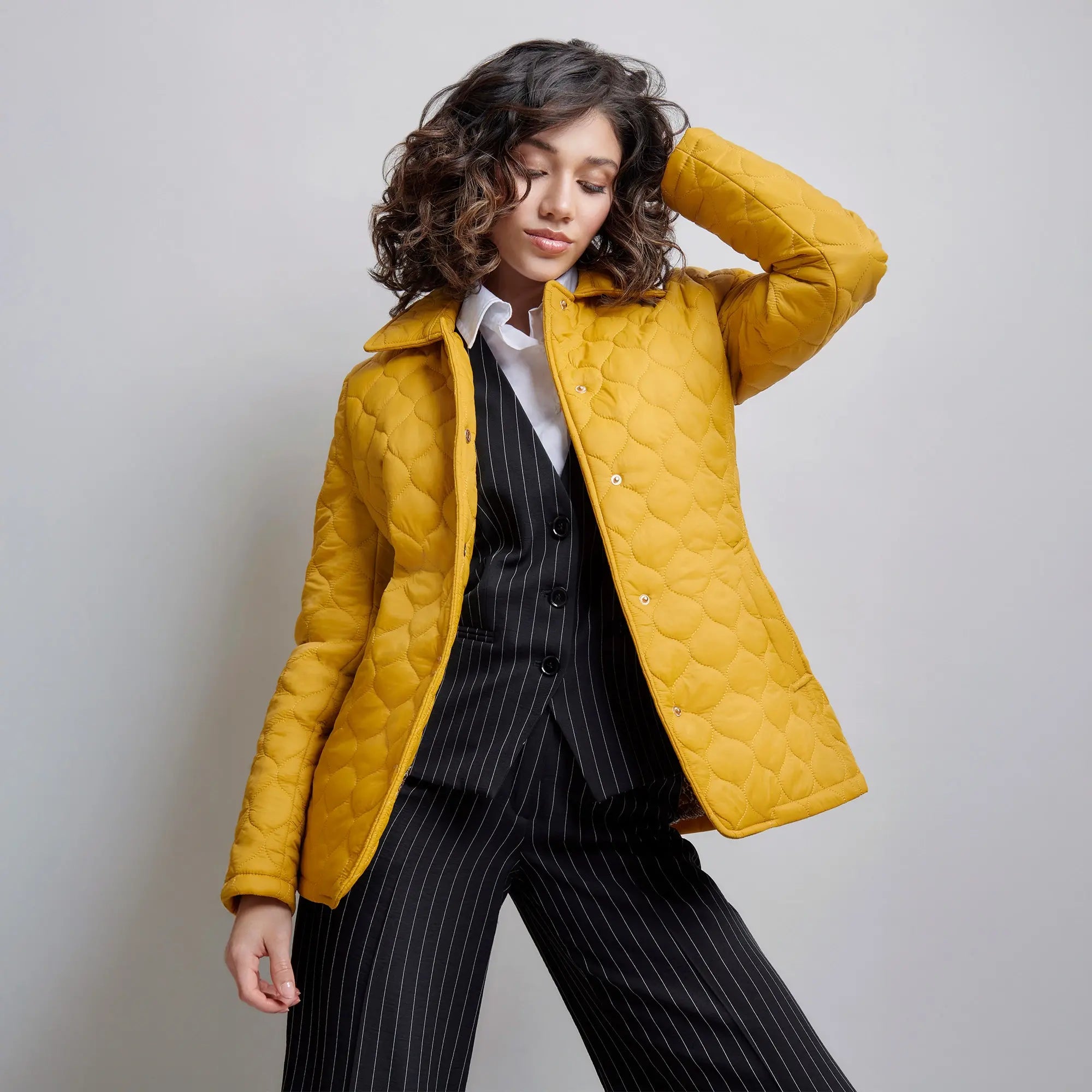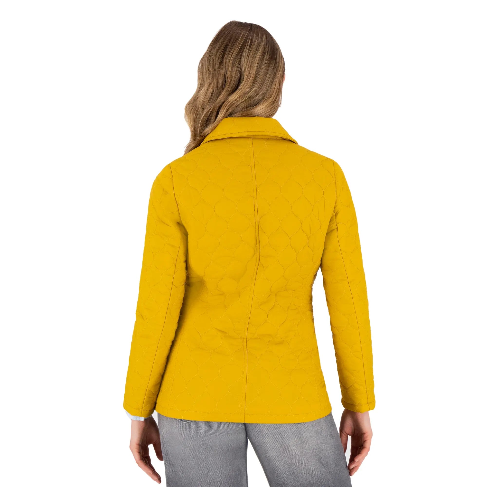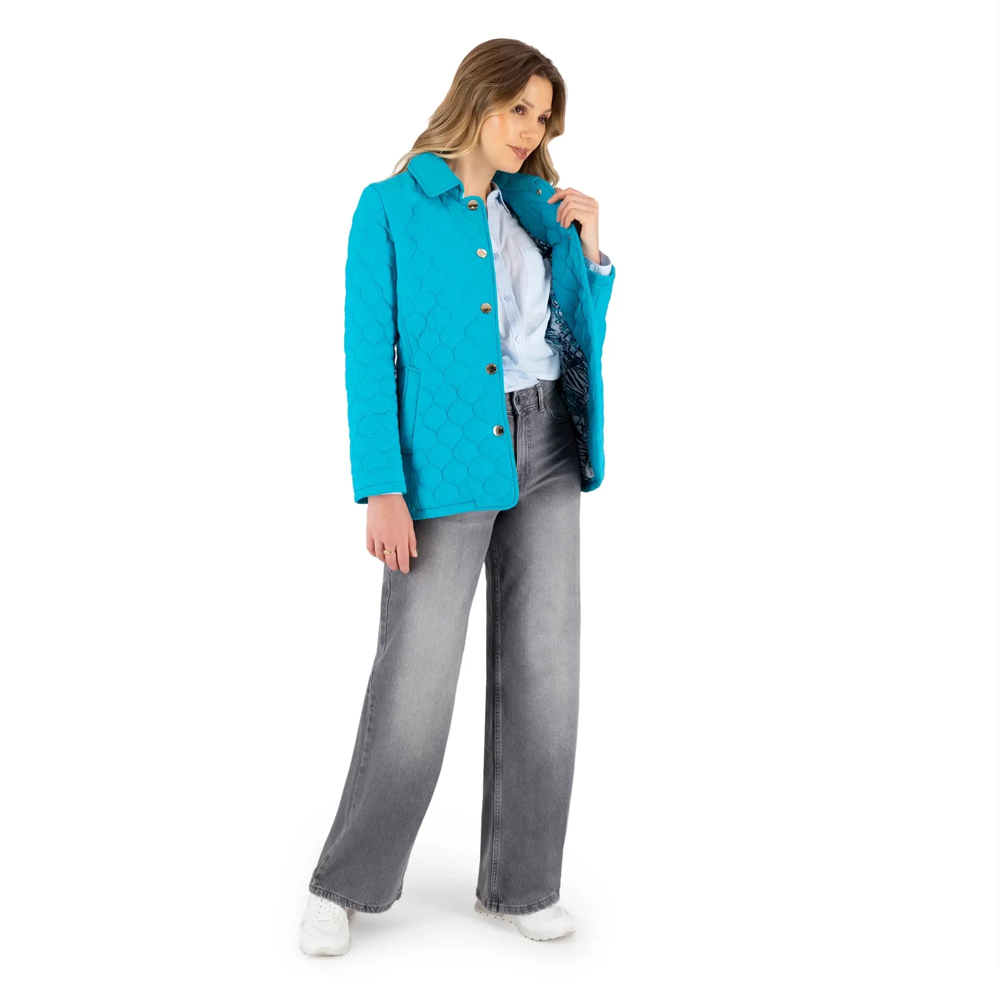 Chamarra acolchada de diseño clásico con cuello camisero. Capitonado redondeado para un acabado elegante. Cierre frontal con botones metálicos. Versátil y cómoda para el día a día.