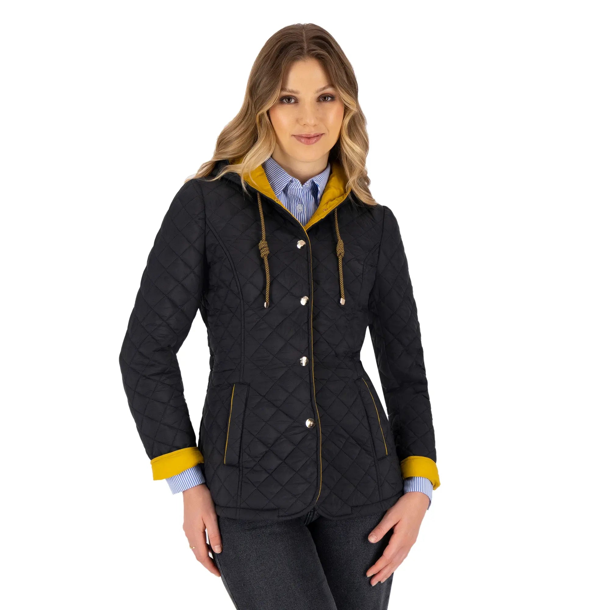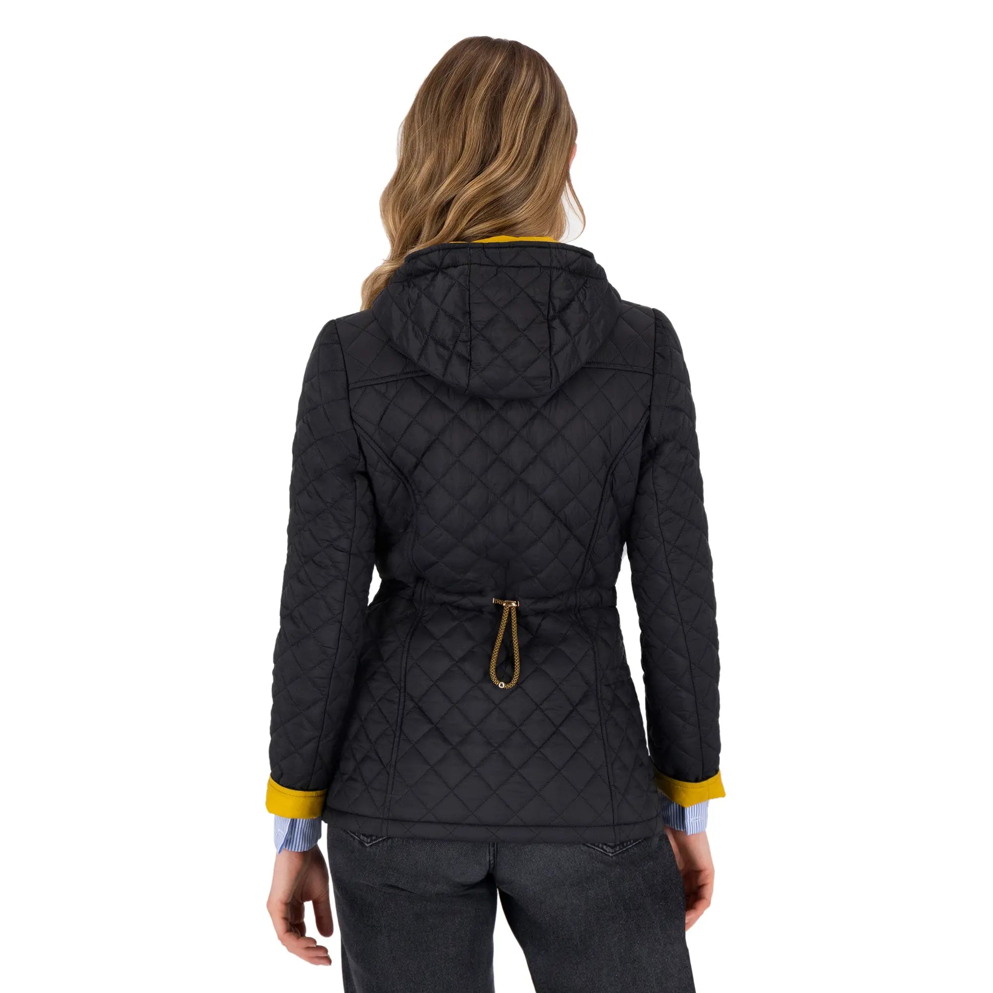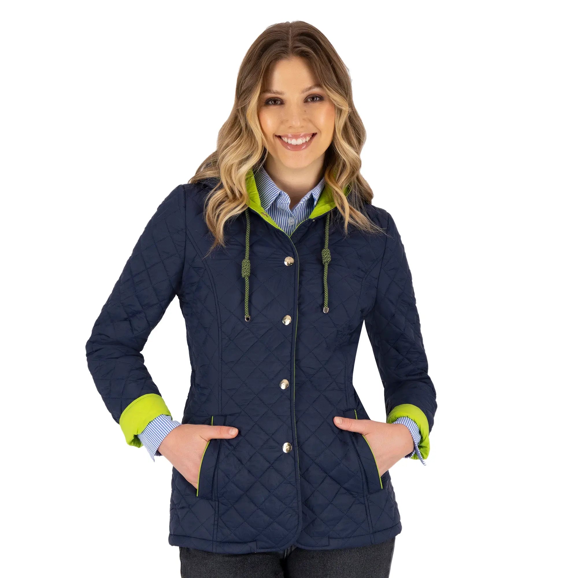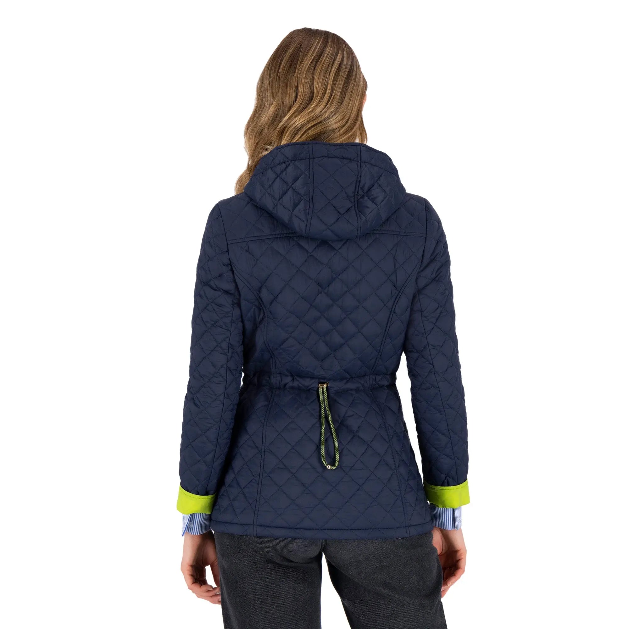 Chamarra con capucha integrada. Cierre frontal con botones metálicos. Jareta ajustable en la espalda que realza la cintura. Detalles en contraste para un toque moderno. Versátil y cómoda.