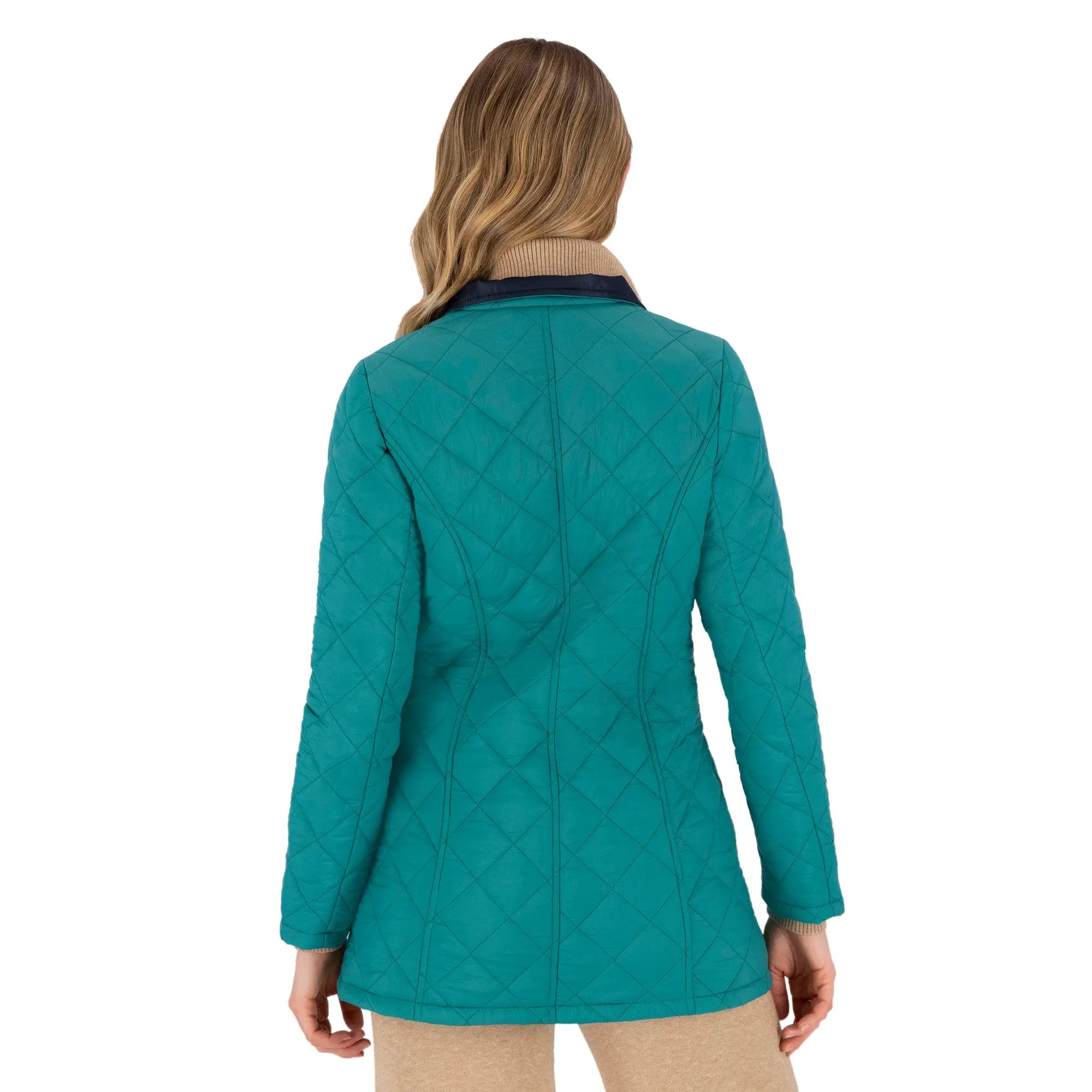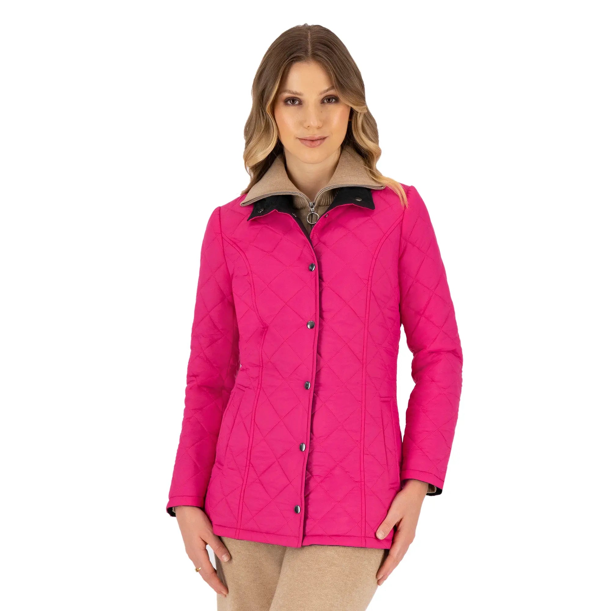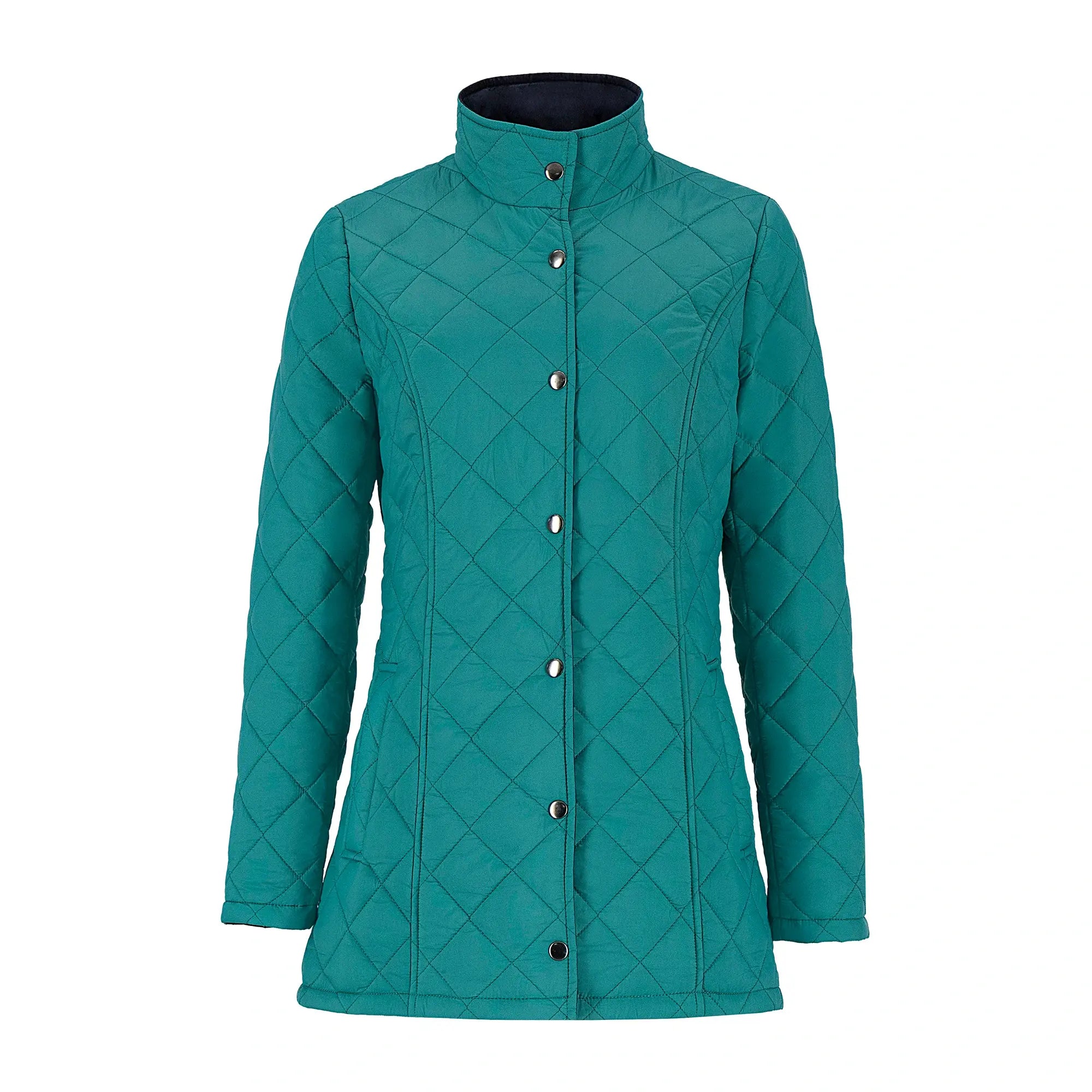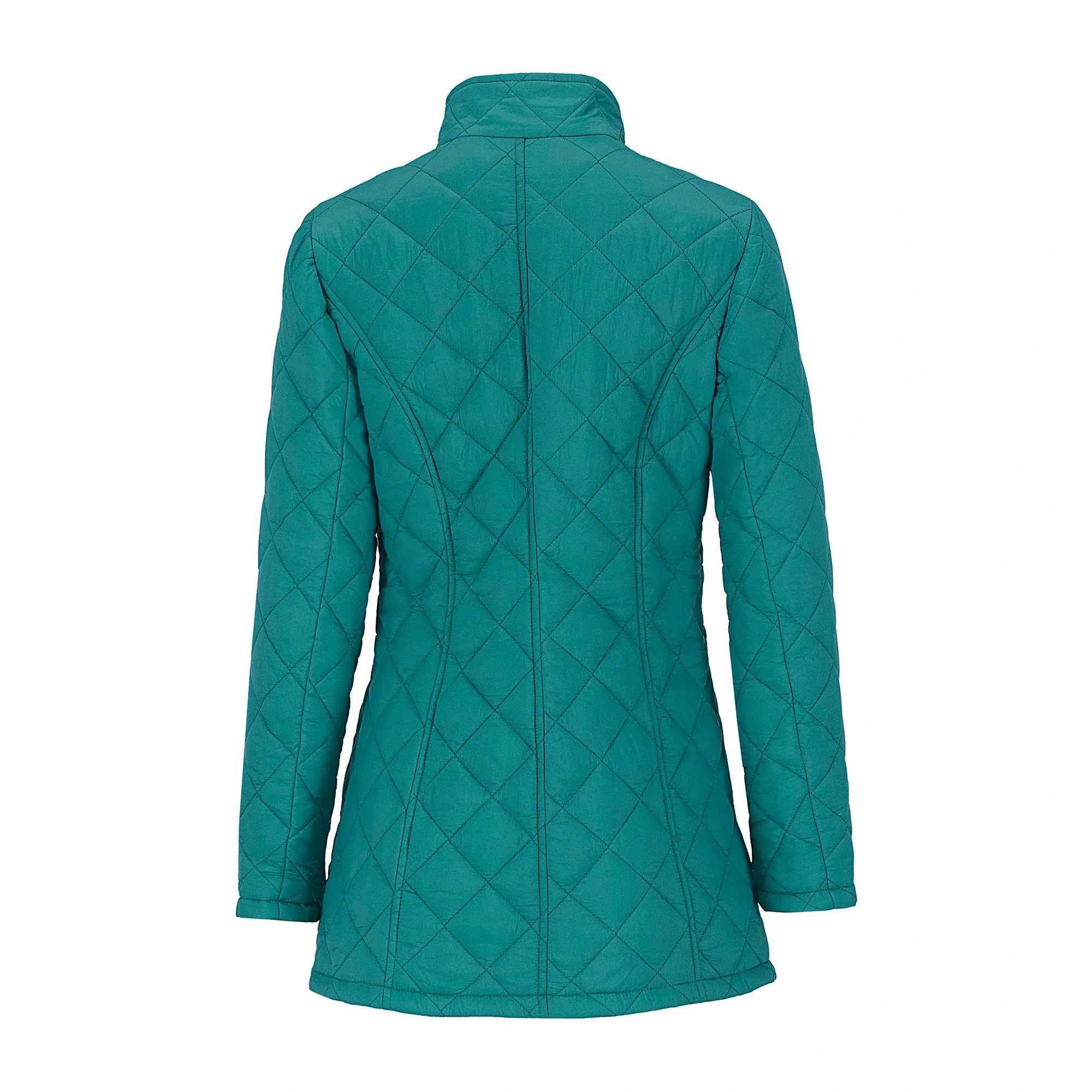 Chamarra doble vista de cuello mao. Costuras en rombo que estilizan la silueta. Cierre frontal con botones metálicos. Dos looks en una sola prenda: práctica y fácil de combinar.