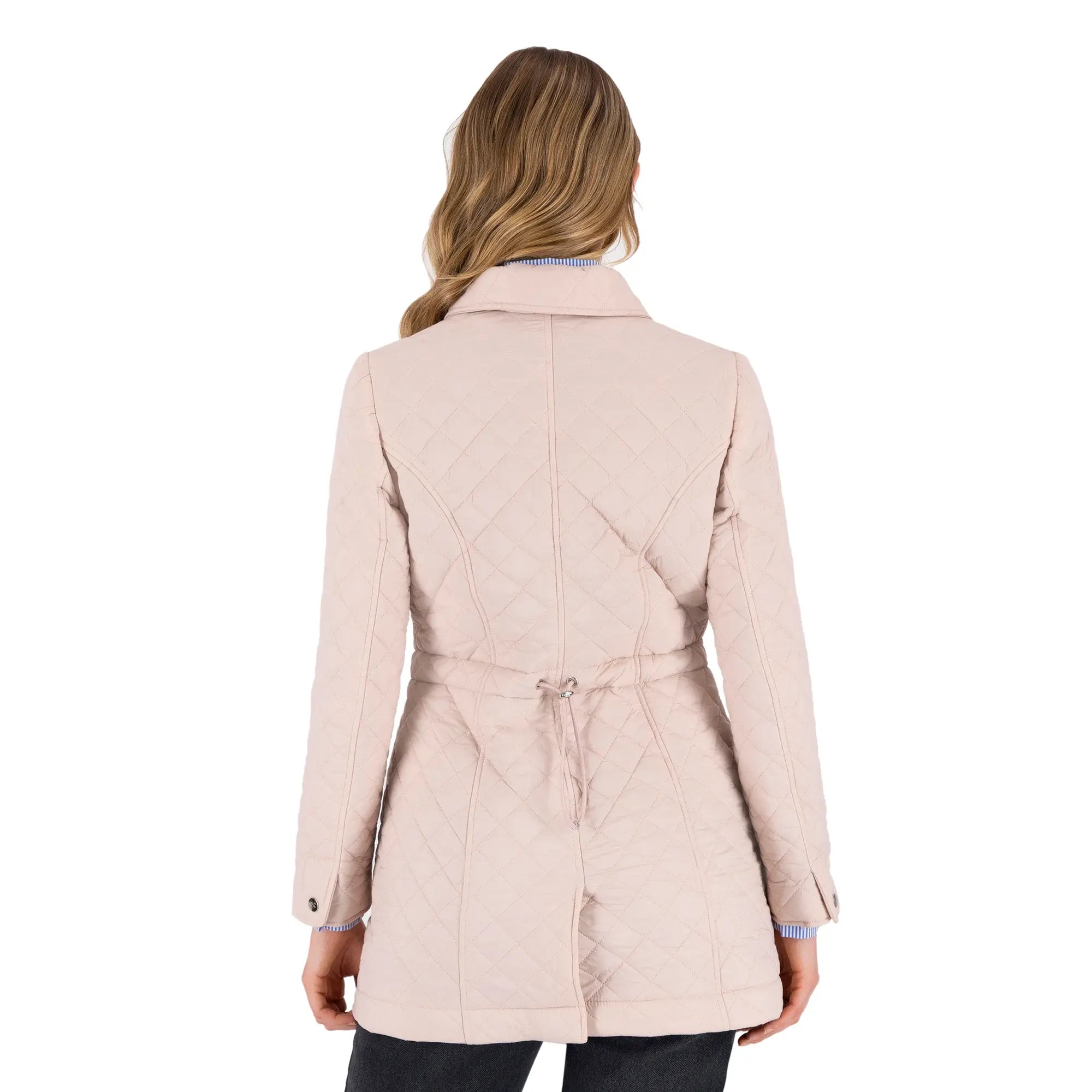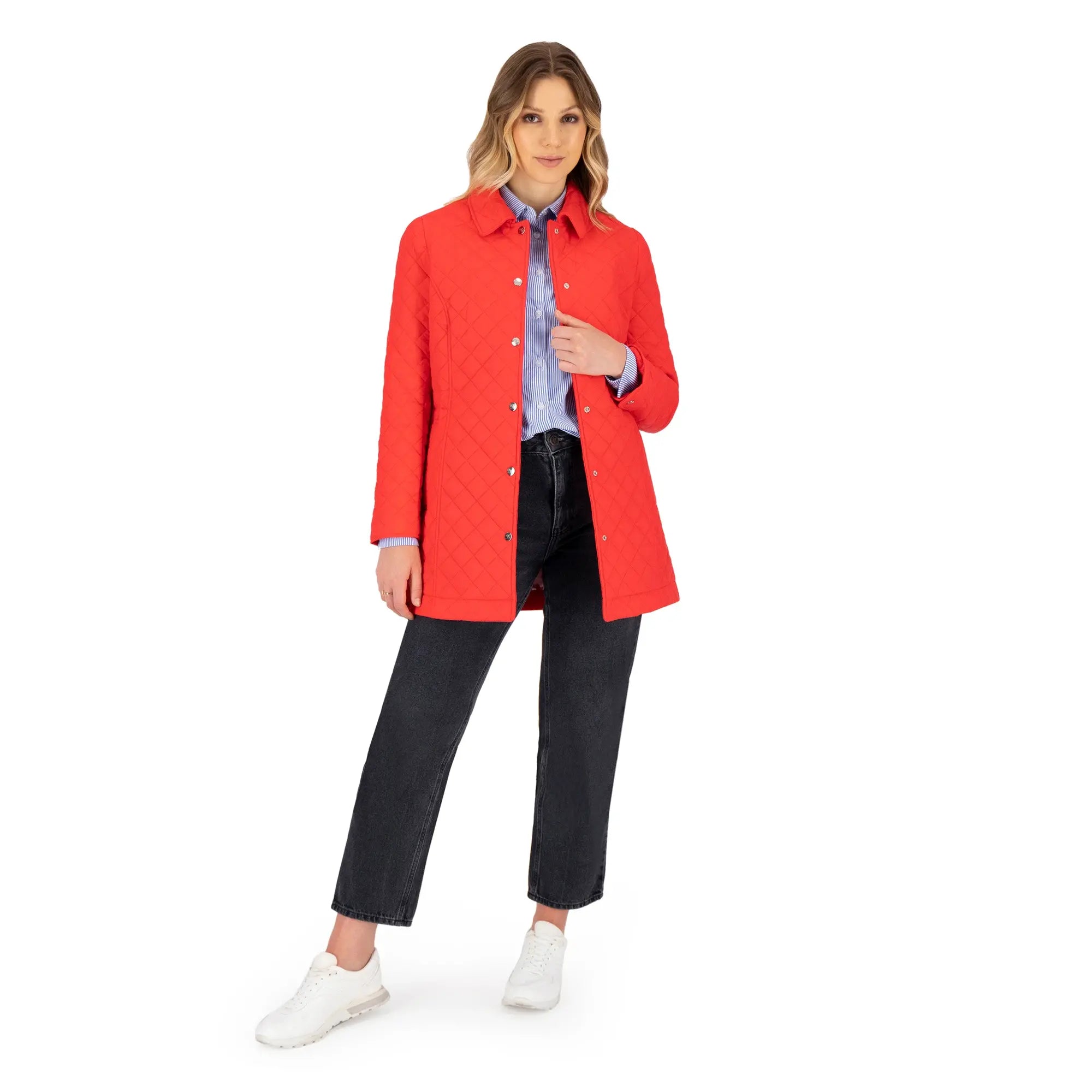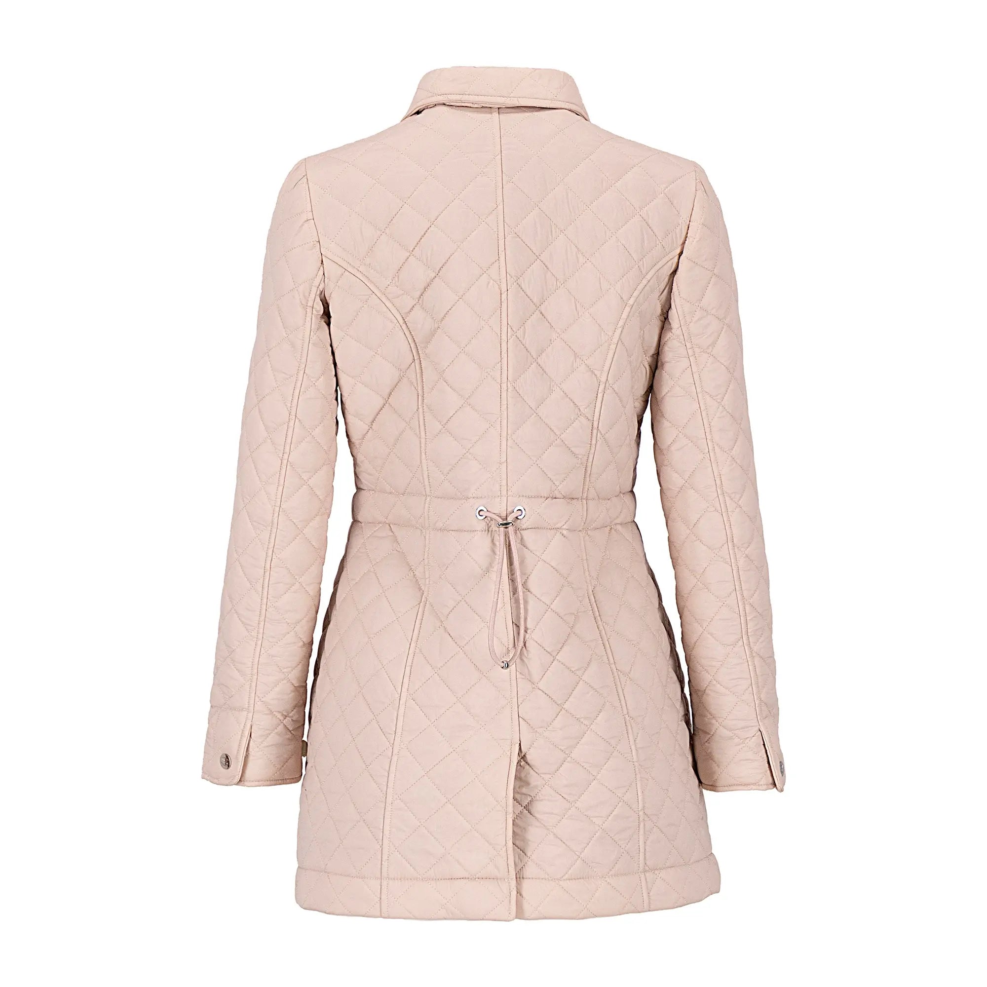 Chamarra acolchada de corte recto con costuras en rombo chico. Botones metálicos al frente. Jareta ajustable en la espalda para un fit definido en la cintura. Ligera, cómoda y fácil de combinar.