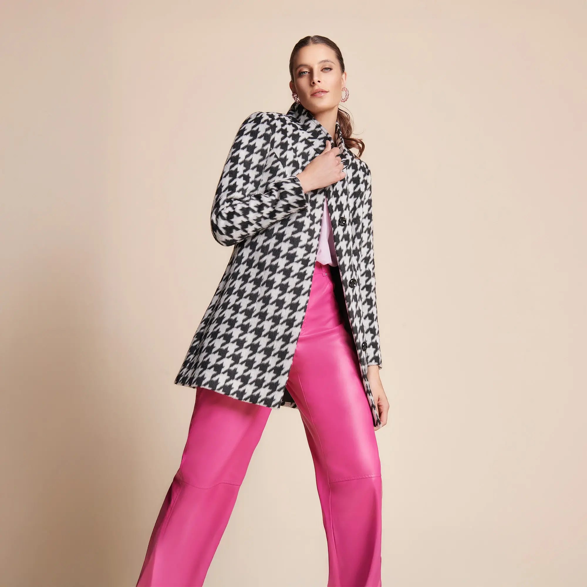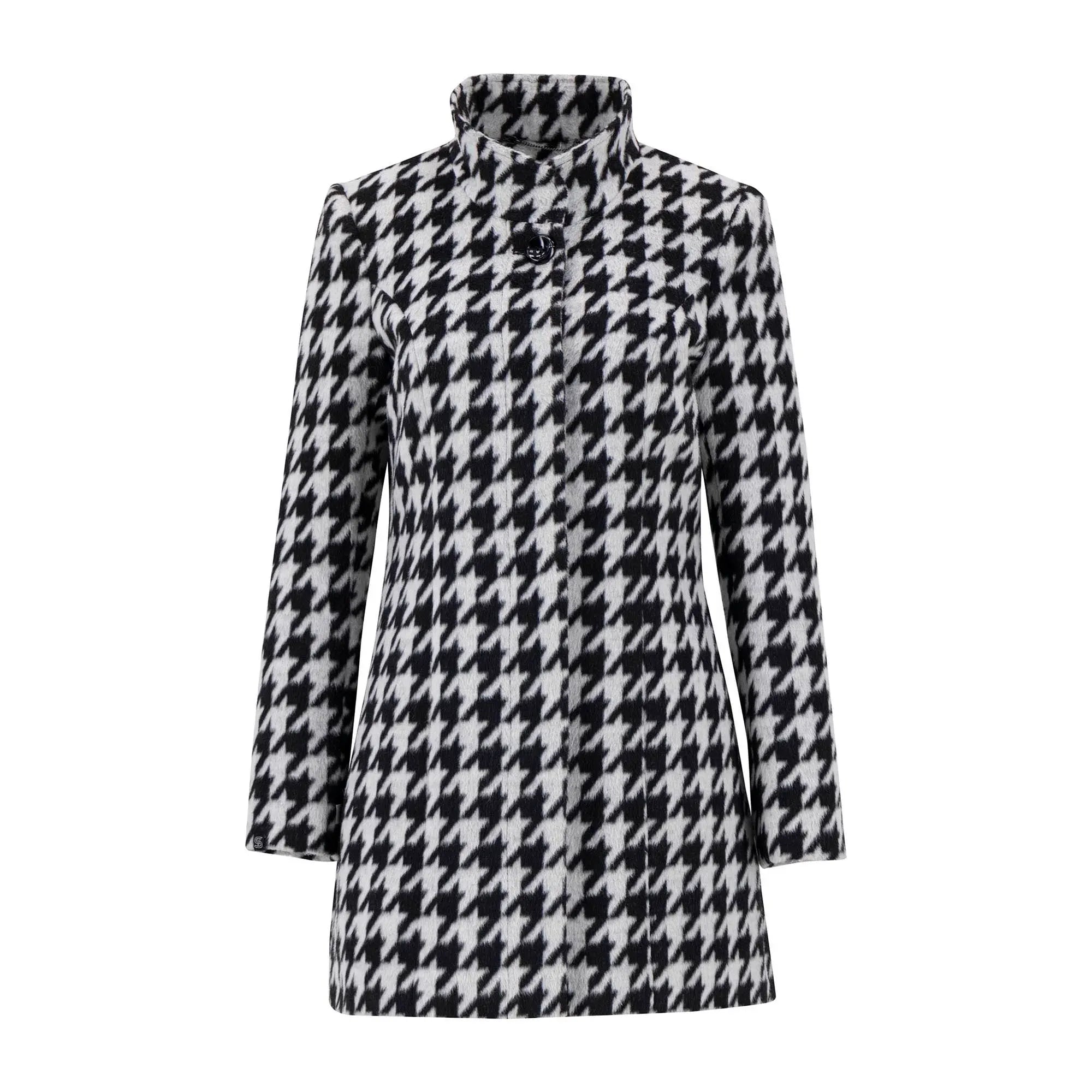 Abrigo Recto Con Cuello Alto Y Diseño A Cuadros