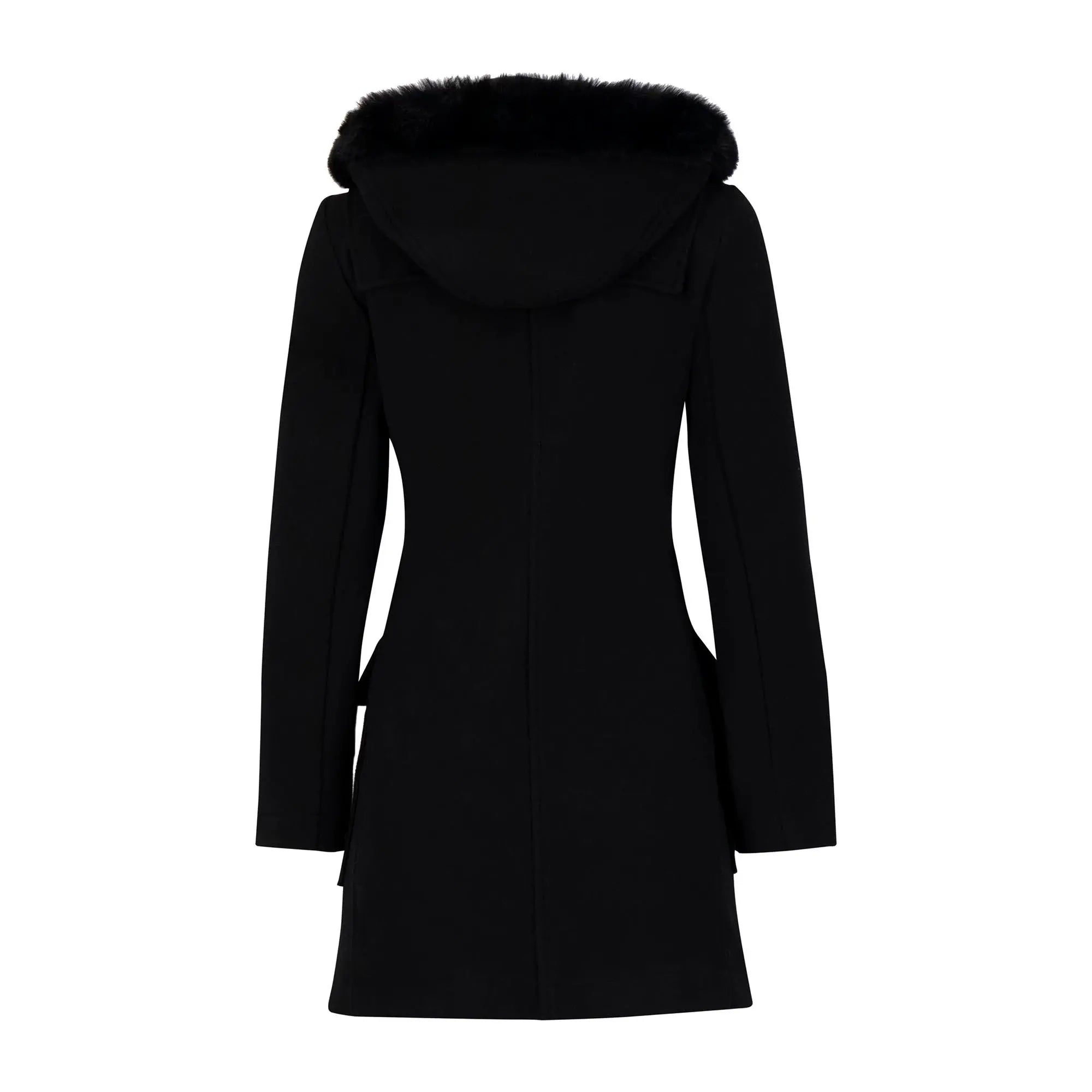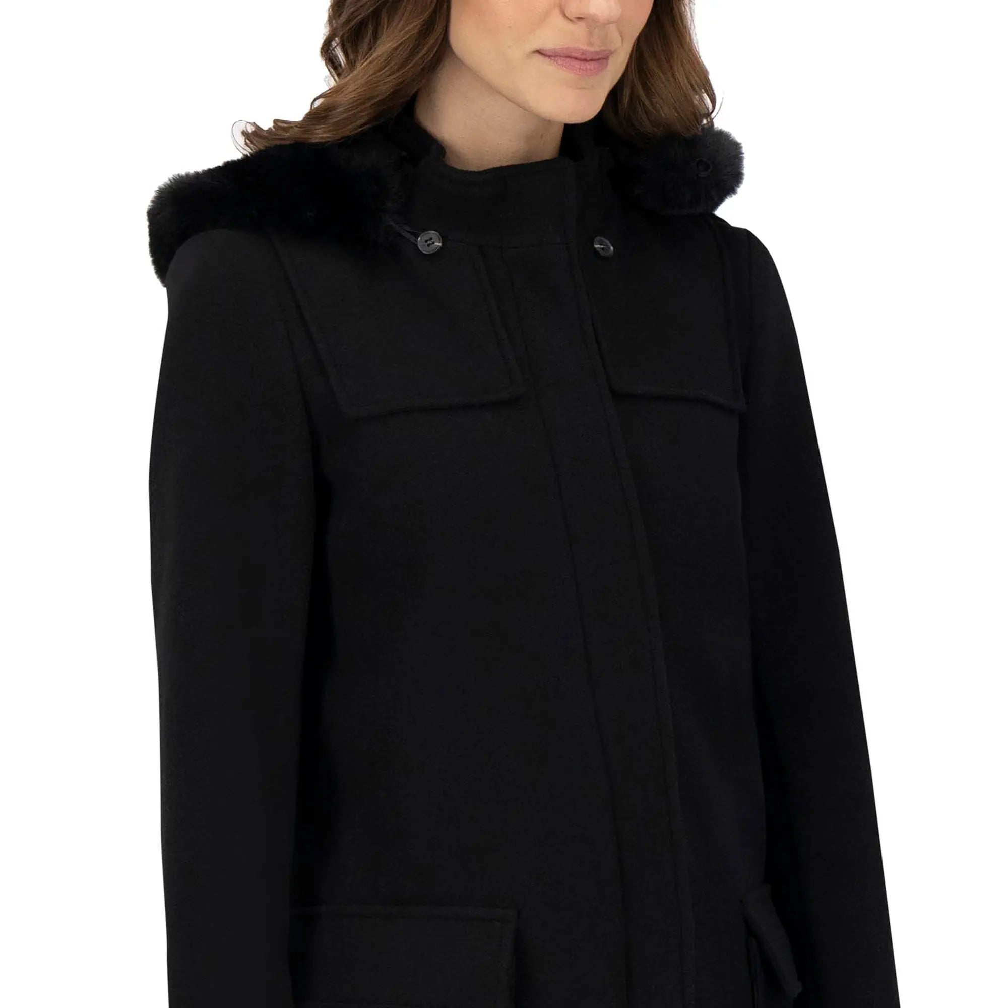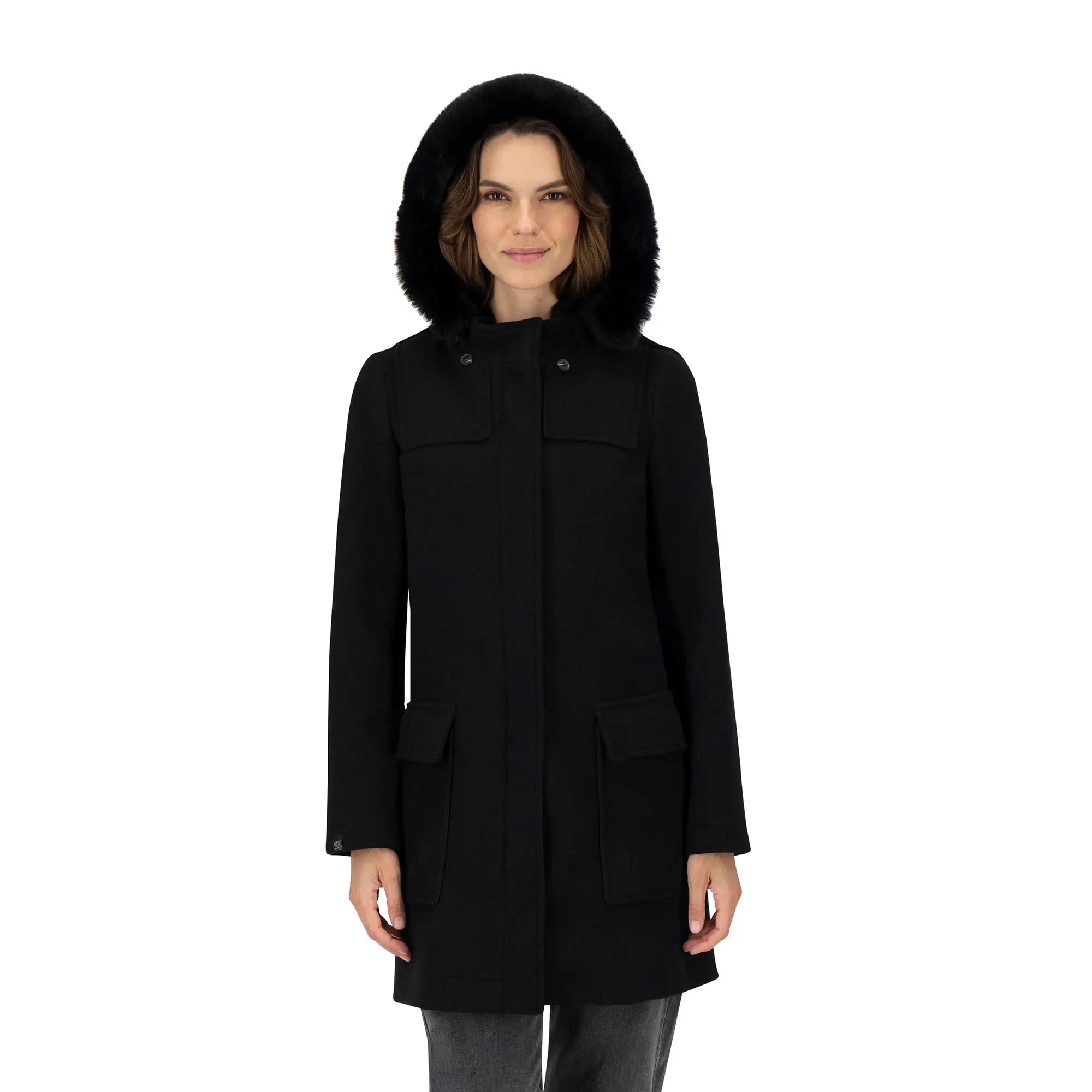Abrigo para mujer largo que incluye una capucha revestida con peluche sintético para mayor calidez. Cuenta con varios bolsillos frontales y cierre de cremallera, combinando un estilo sofisticado y práctico. Una prenda ideal para mantener el confort en climas fríos, perfecta para el día a día, la oficina o eventos informales.