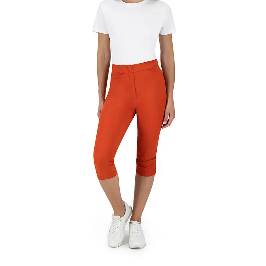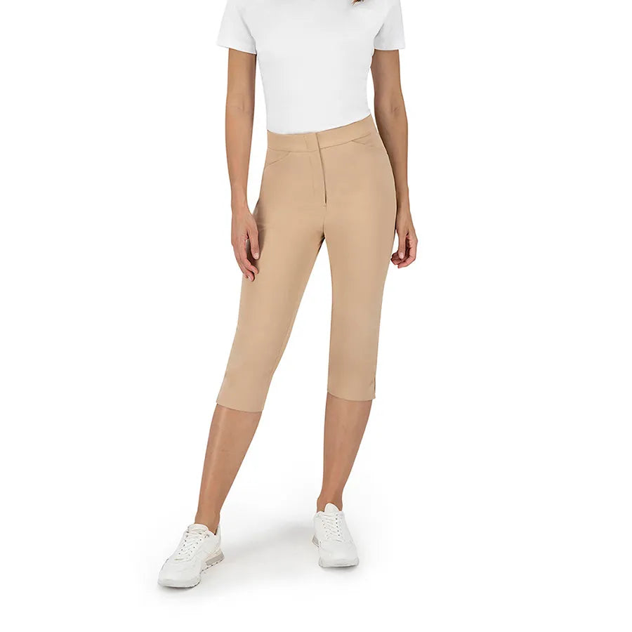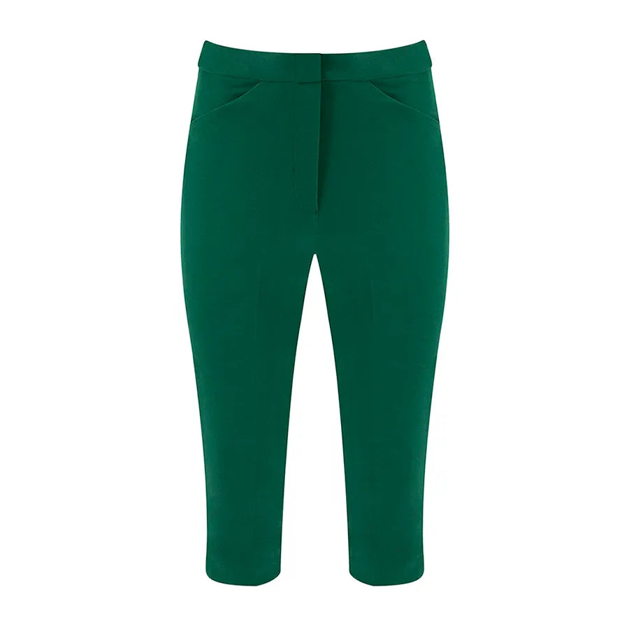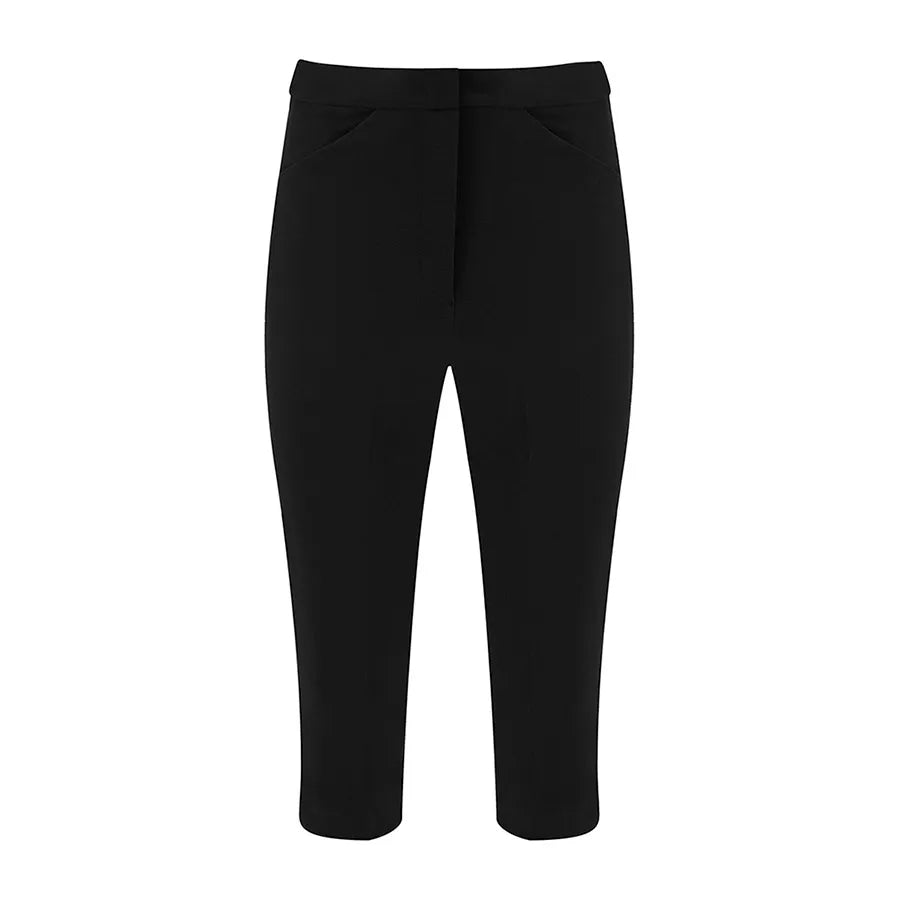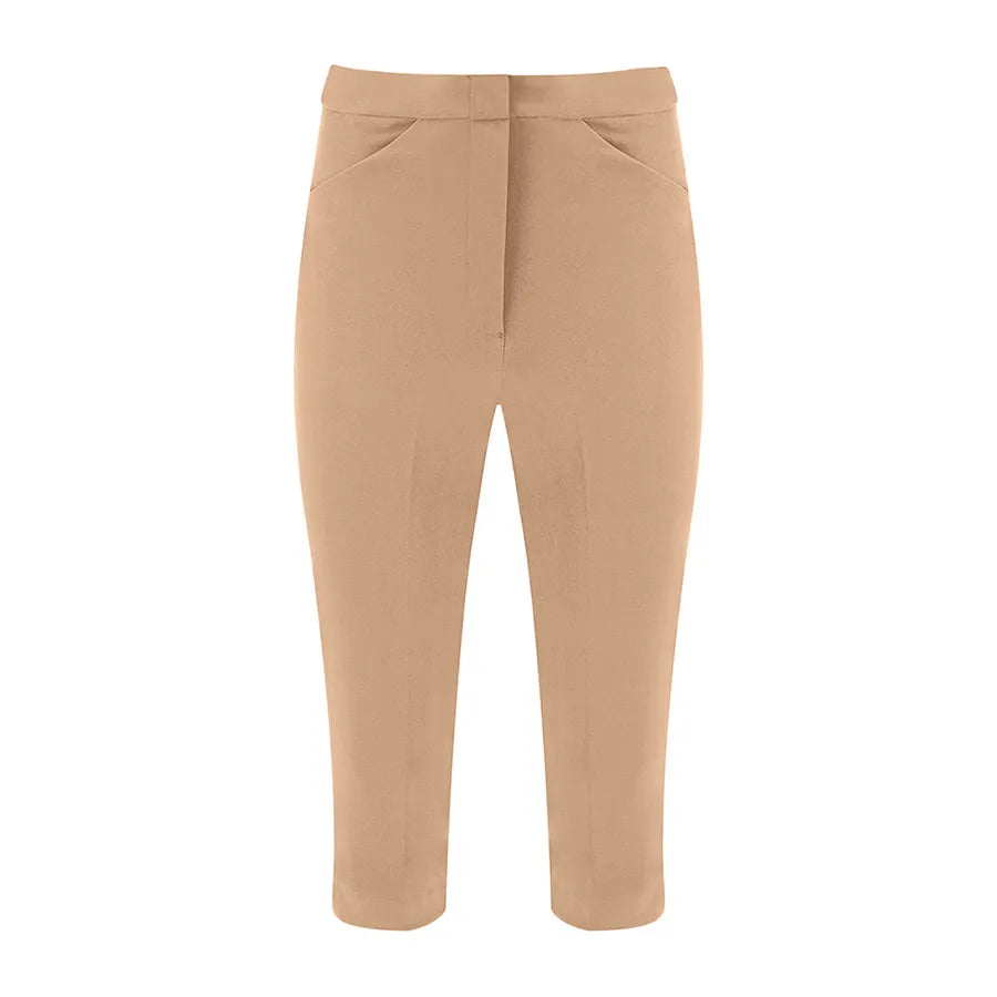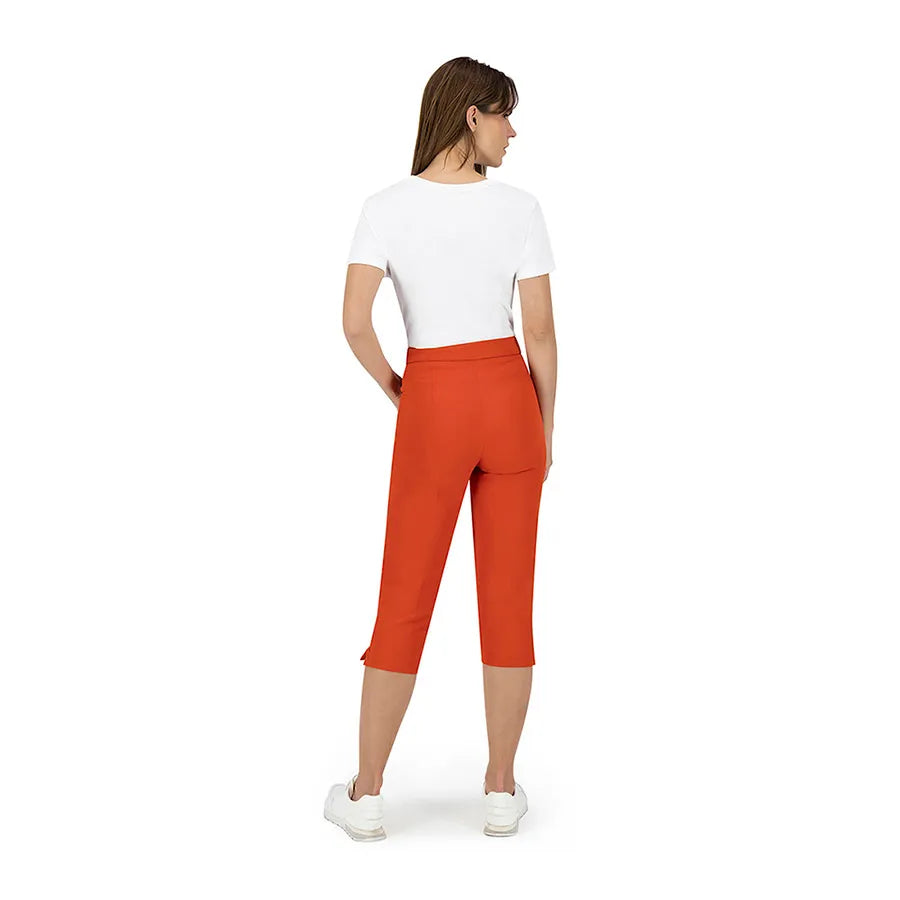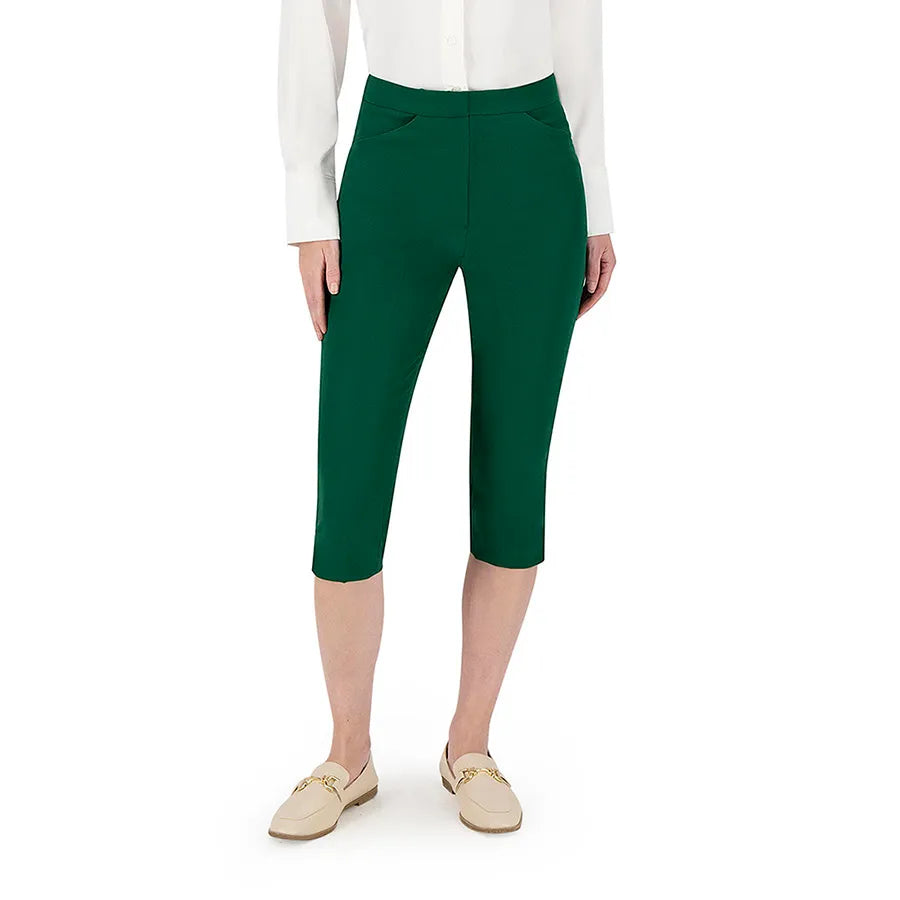 Este pantalón capri entallado redefine la versatilidad con una silueta ajustada que estiliza la figura y un largo ideal para climas cálidos o estilismos intermedios.