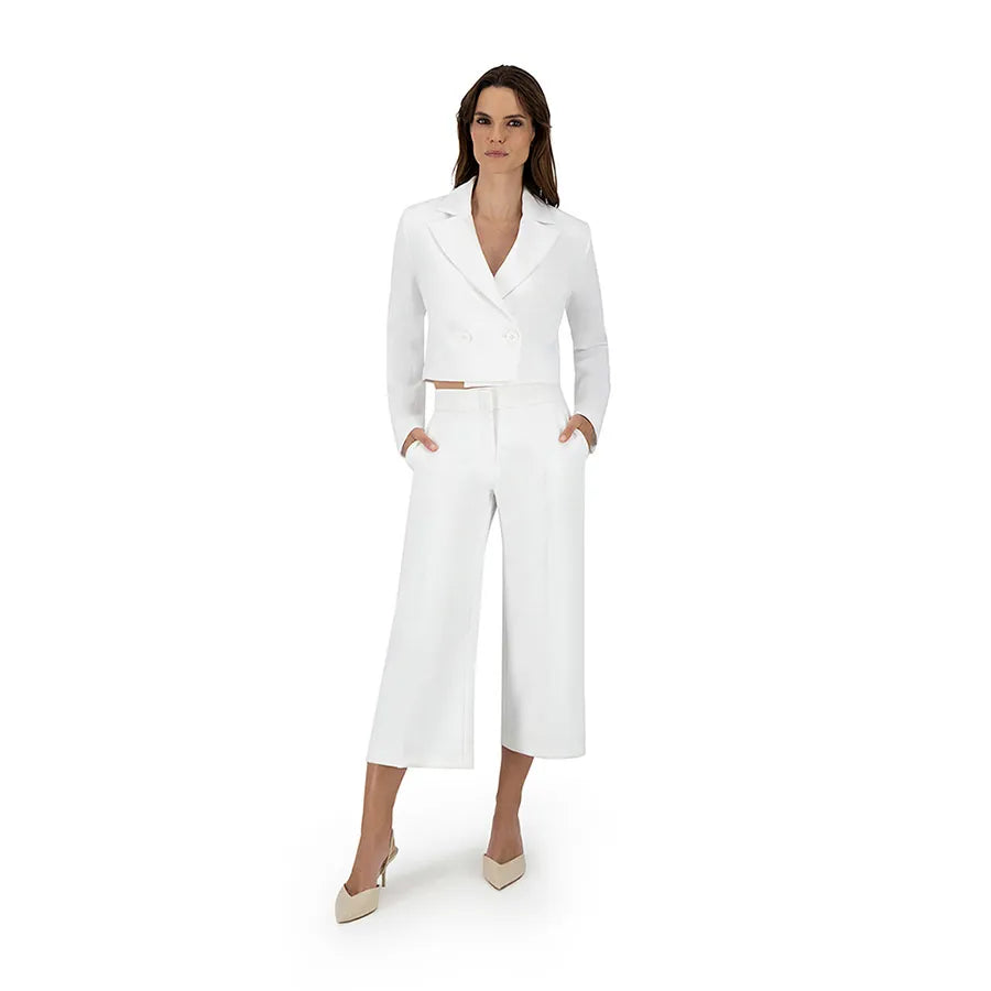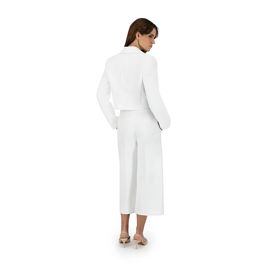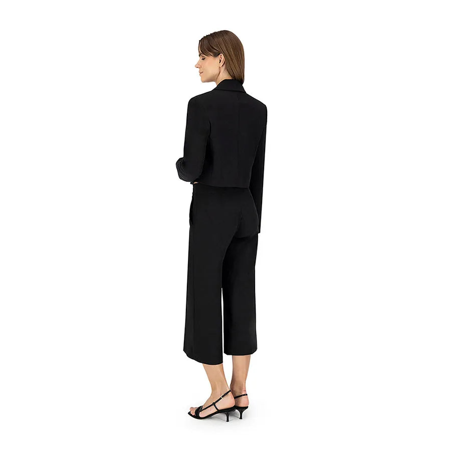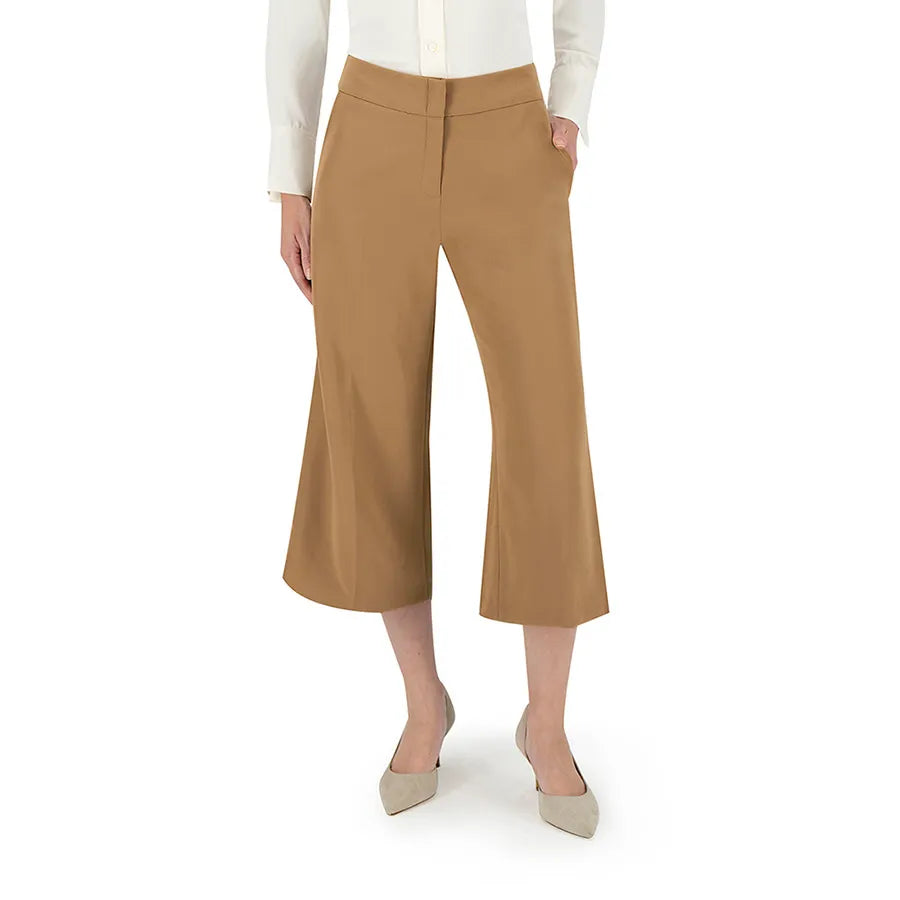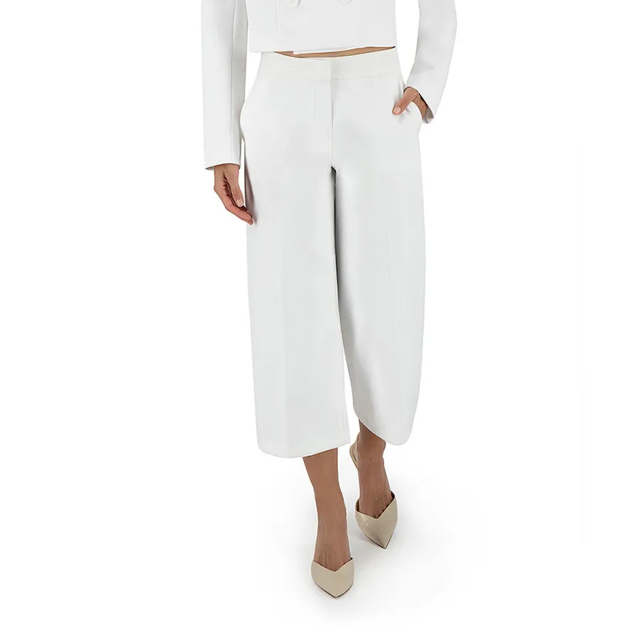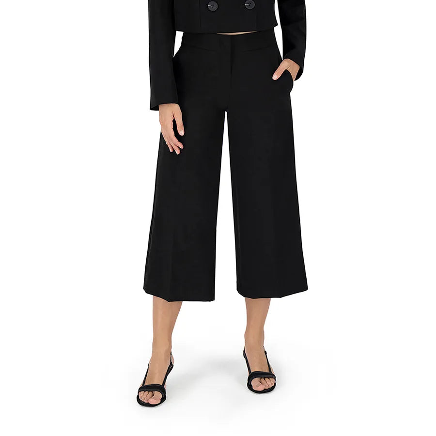 Diseñado con una pretina limpia sin cinturilla visible, su corte fluido en pierna ancha cae suavemente hasta la pantorrilla, creando una figura relajada pero refinada. Su largo cropped lo hace ideal para combinar con tacones, mocasines o incluso zapatillas formales, adaptándose con facilidad a diferentes ocasiones.