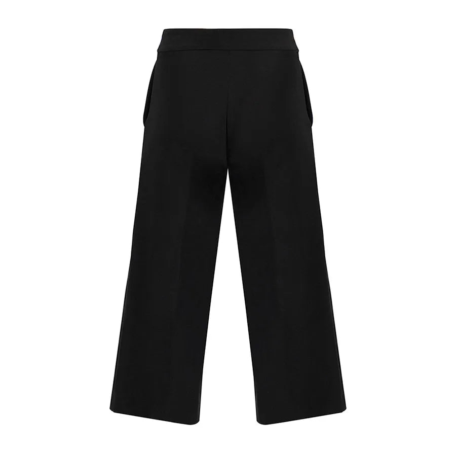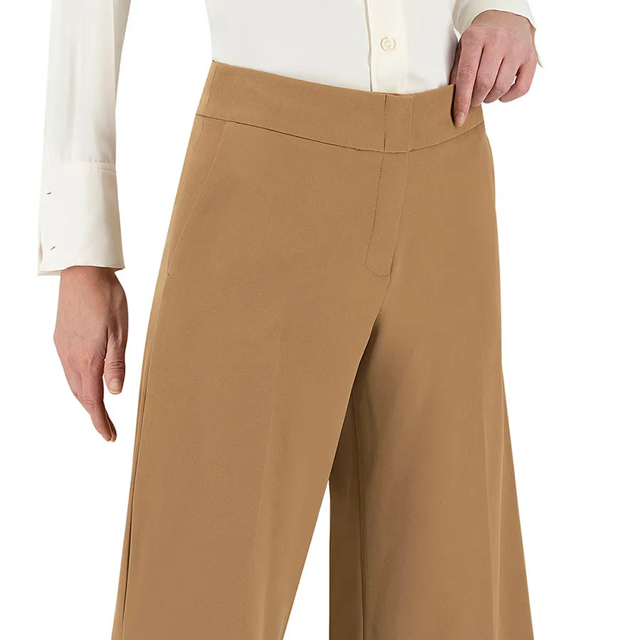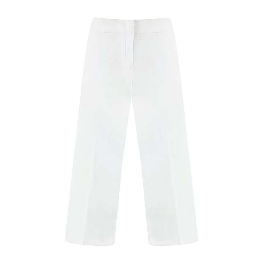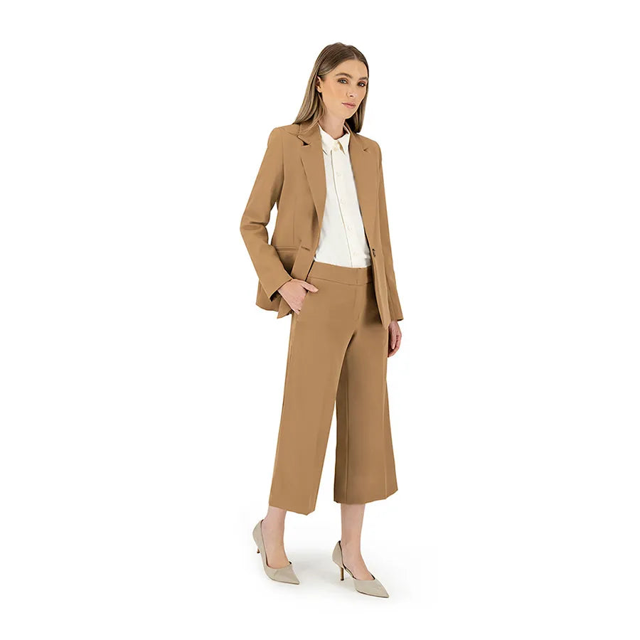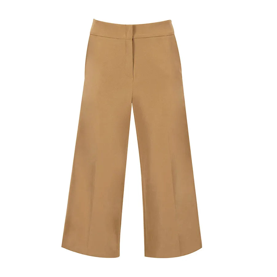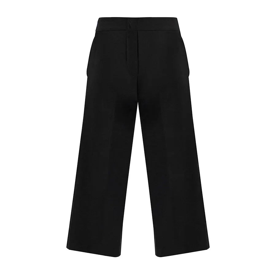 Diseñado con una pretina limpia sin cinturilla visible, su corte fluido en pierna ancha cae suavemente hasta la pantorrilla, creando una figura relajada pero refinada. Su largo cropped lo hace ideal para combinar con tacones, mocasines o incluso zapatillas formales, adaptándose con facilidad a diferentes ocasiones.
