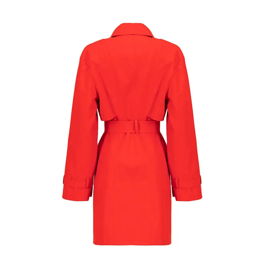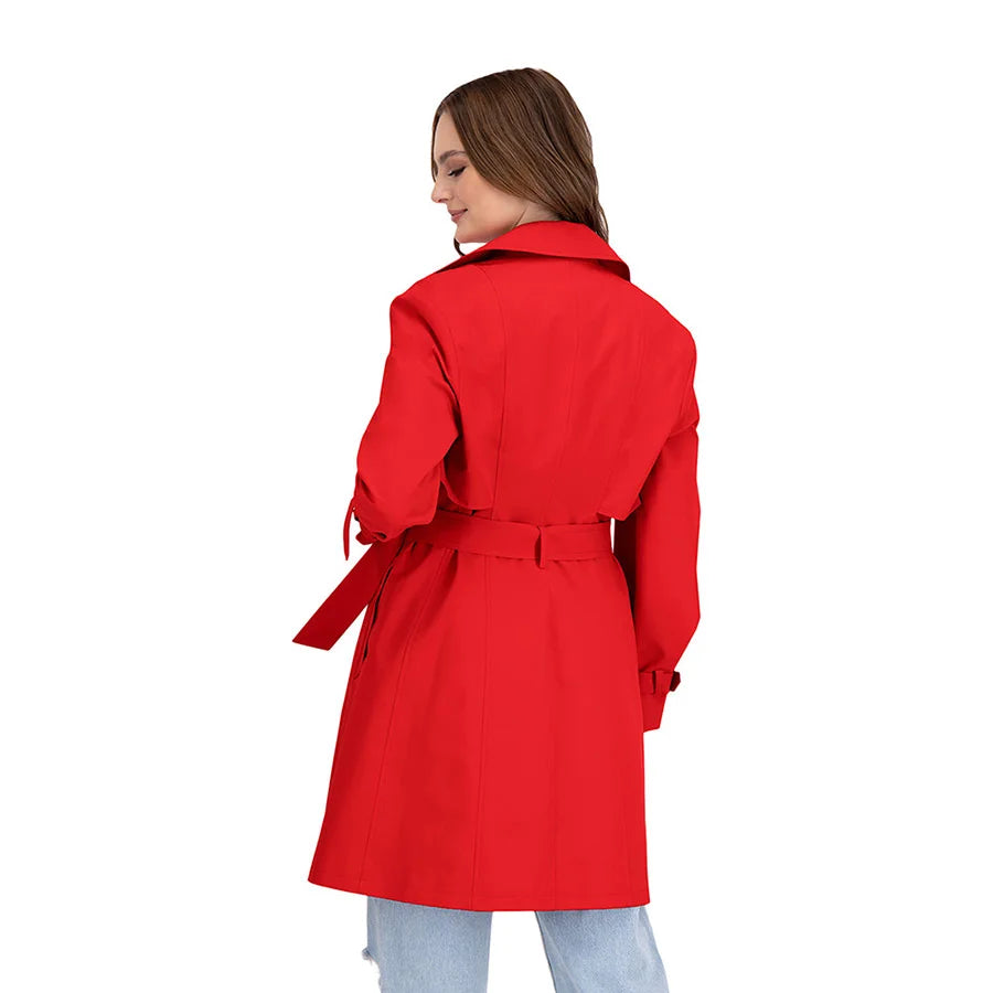 Gabardina con forro estampado y solapa cortavientos lateral. Tiene un diseño abierto con cuello en V y solapa tipo muesca. Cuenta con puños ajustables con correa y un cinturón deslizable. Presenta un estilo versátil y sofisticado.