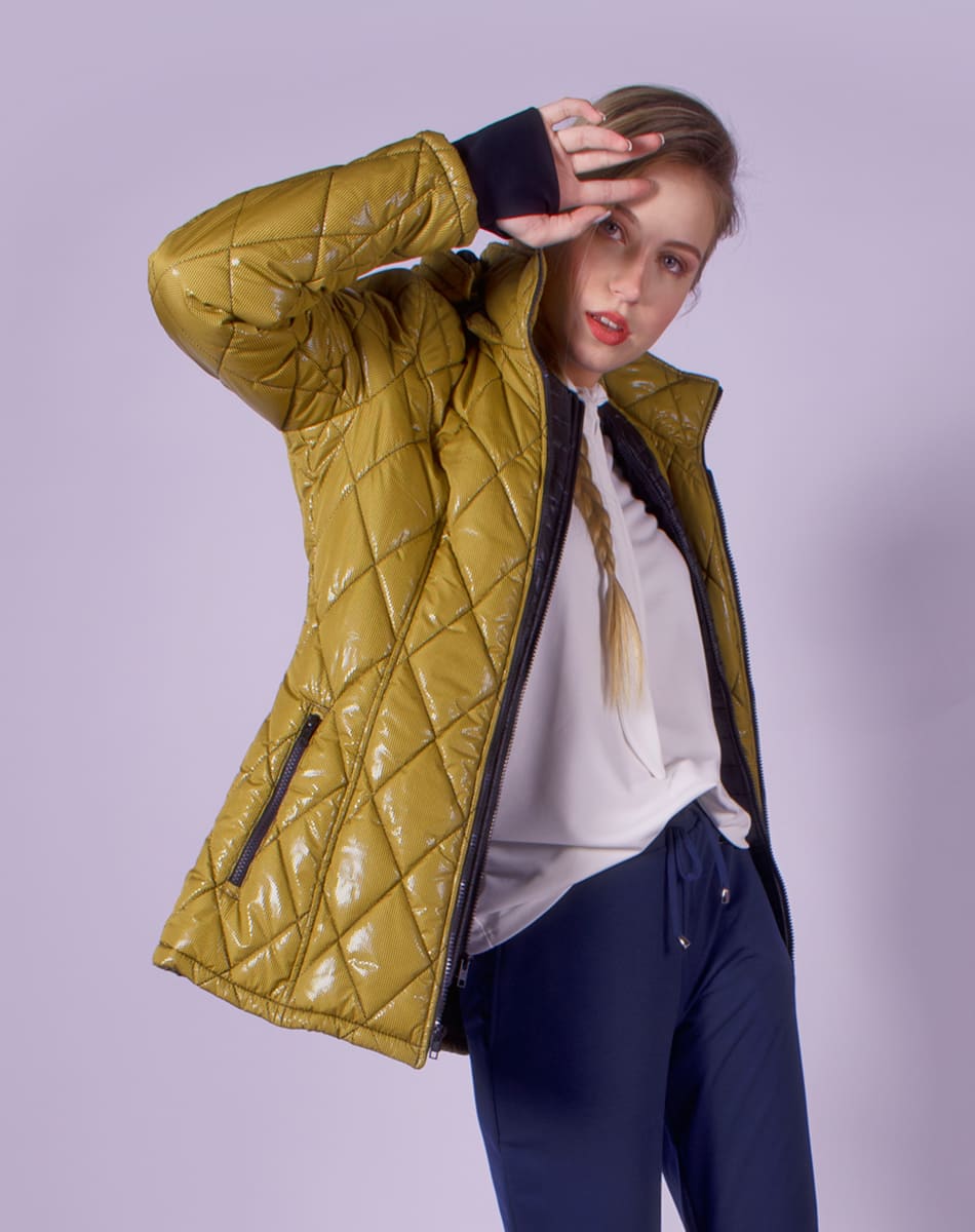 Esta chamarra cuenta con estampado sutil de puntos negros, una pechera integrada en capitonado; sus puños integrados de tela que cubren abajo de los nudillos con salida en dedo pulgar es un diseño pensado en ti.
