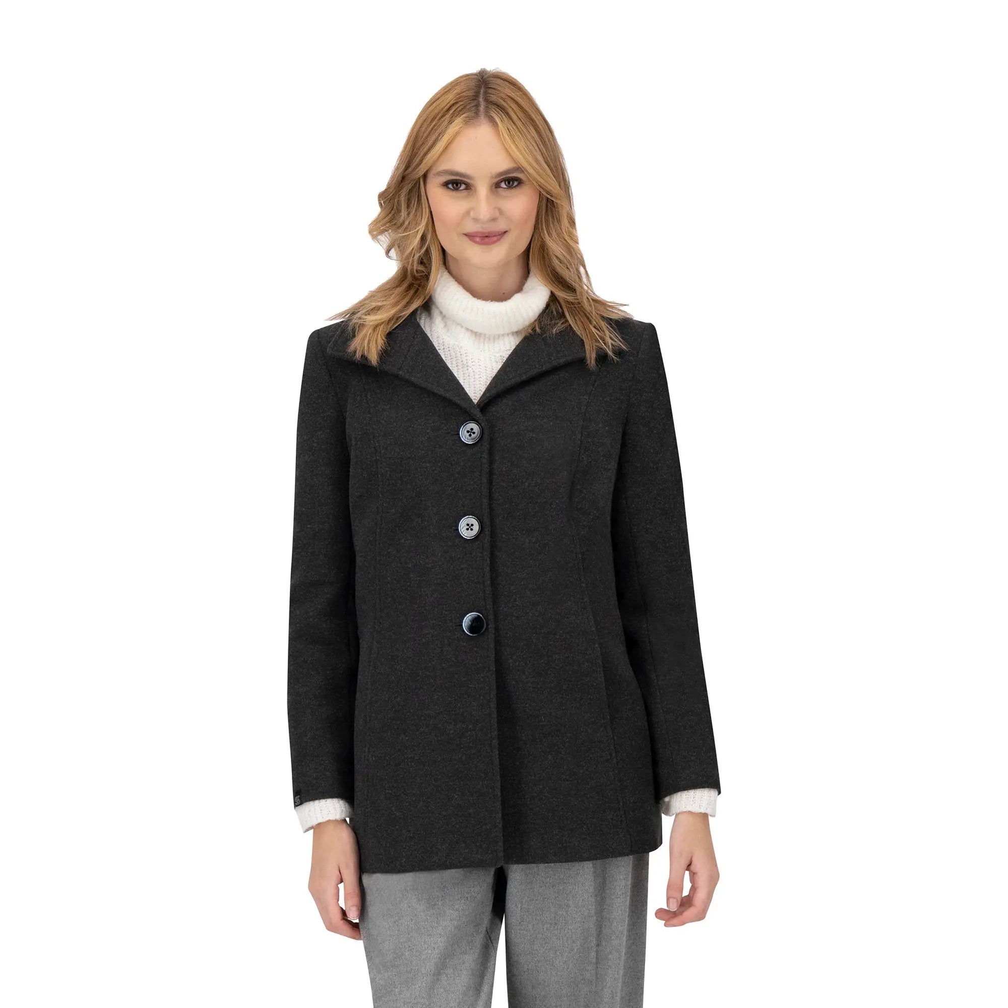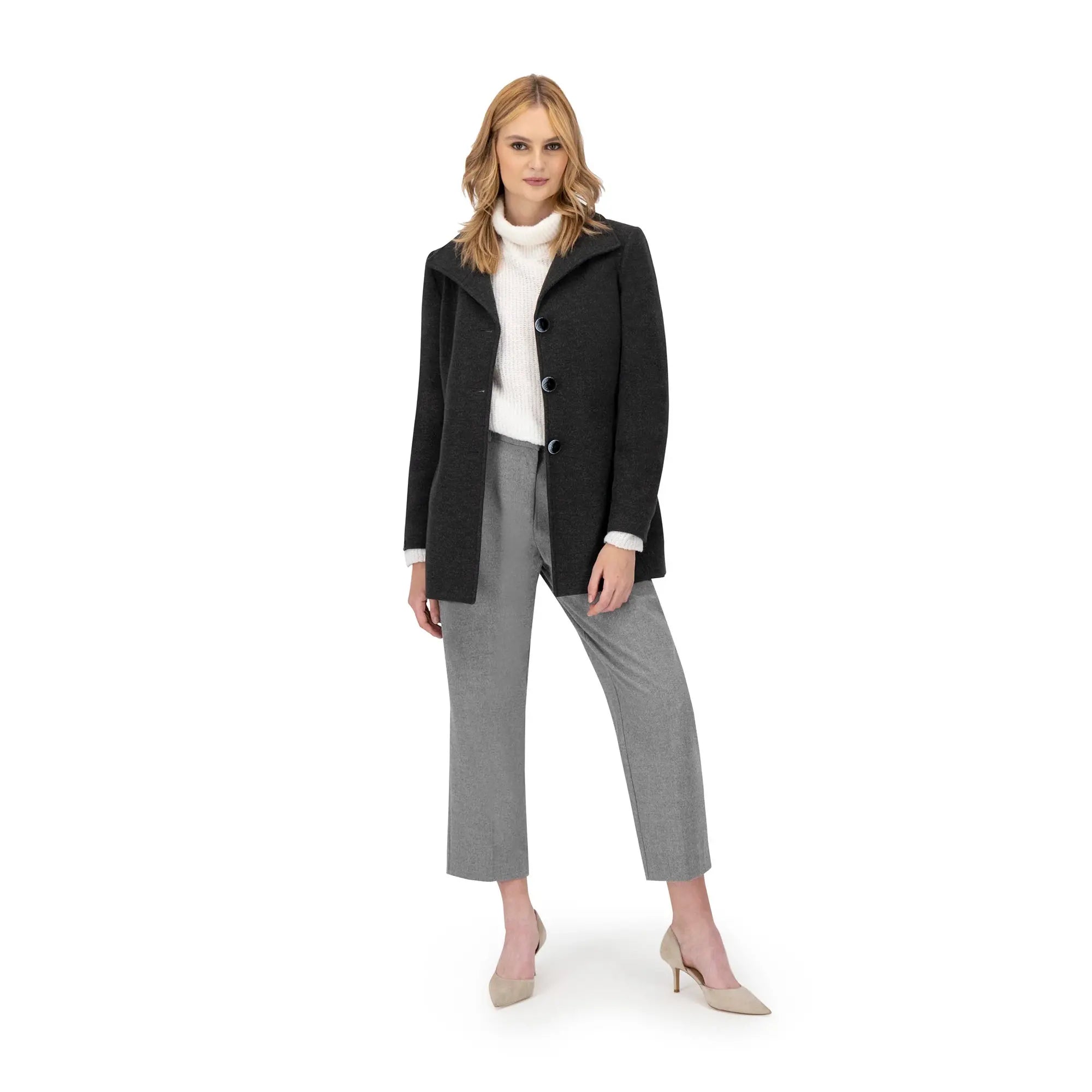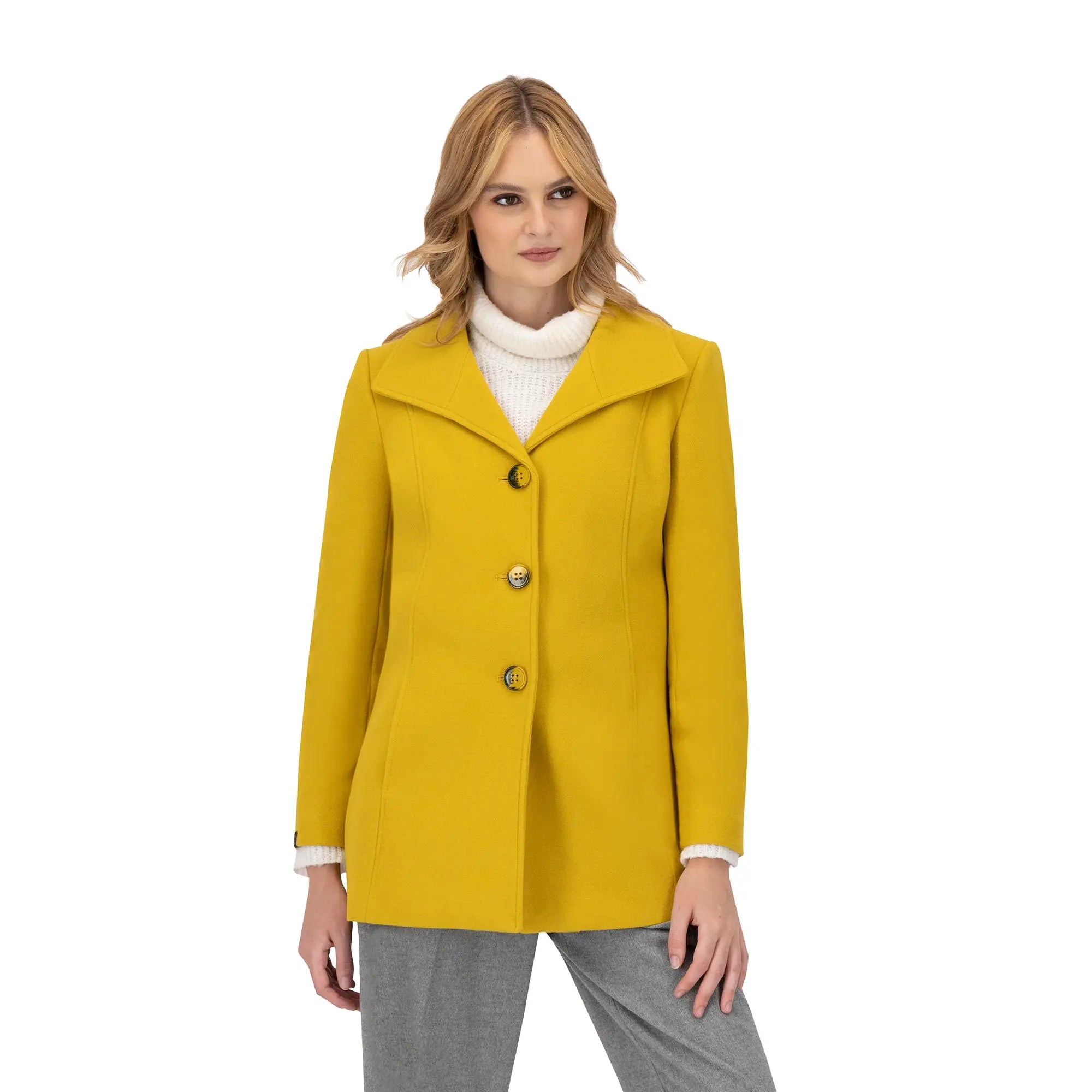 Este abrigo de mujer es una pieza imprescindible para quienes buscan estilo y funcionalidad en su guardarropa. Su corte recto y solapa amplia aportan estructura, mientras que los botones frontales añaden un toque clásico que realza cualquier look.