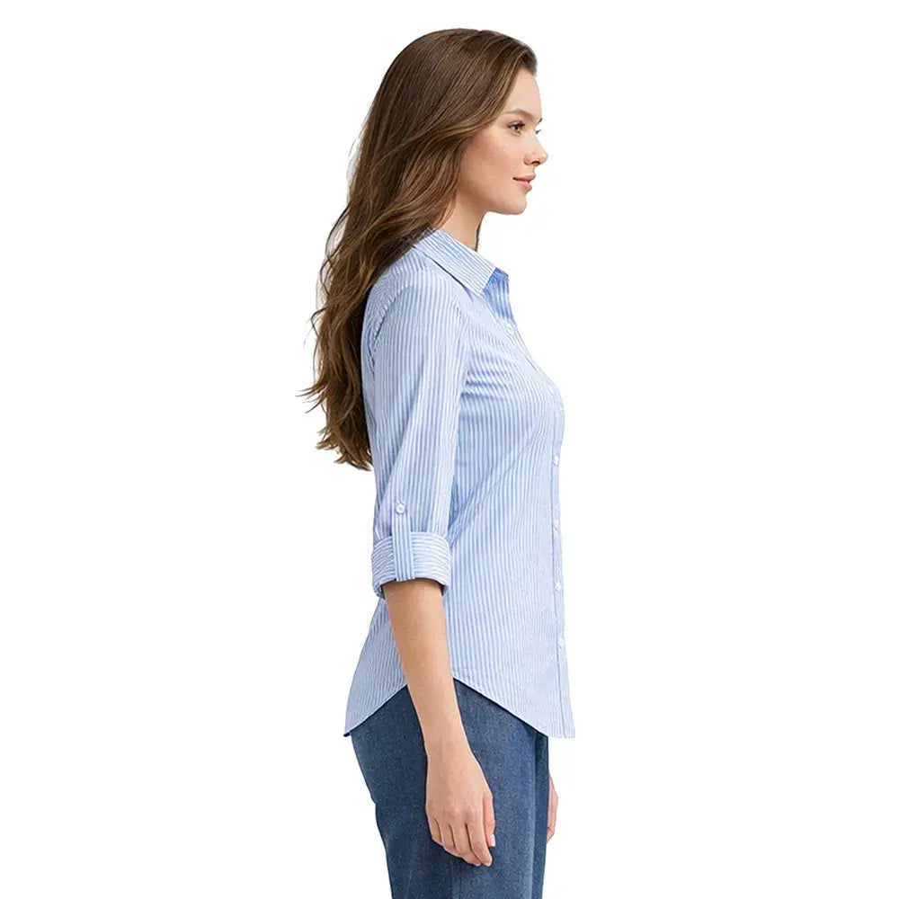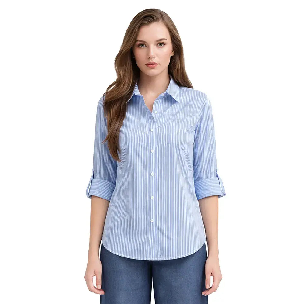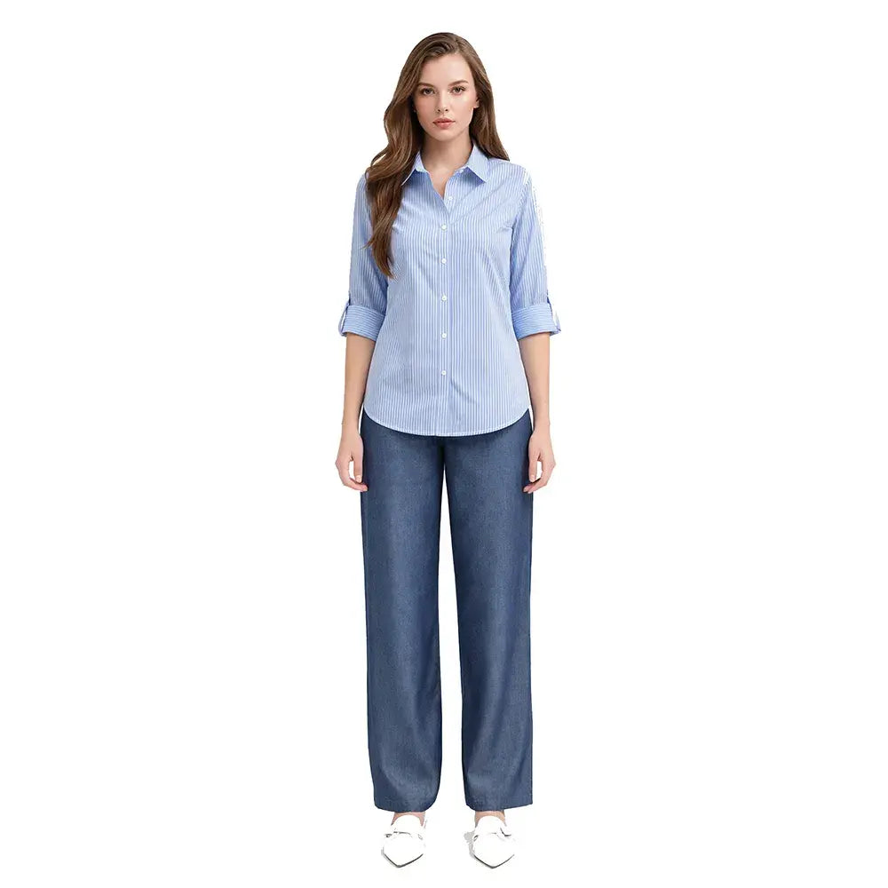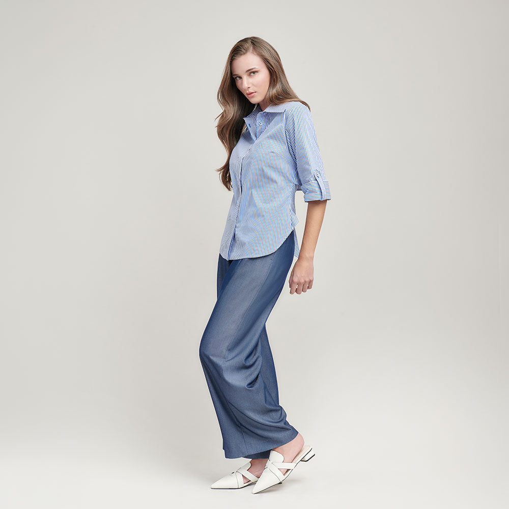 De inspiración refinada y detalles cuidadosamente pensados, esta blusa destaca por su cuello amplio que enmarca suavemente el rostro. La botonadura oculta mantiene una estética pulida, mientras que el corte posterior con moño añade un acento romántico y femenino. El elevador de manga permite versatilidad en el styling, convirtiéndola en una pieza dinámica y sofisticada.