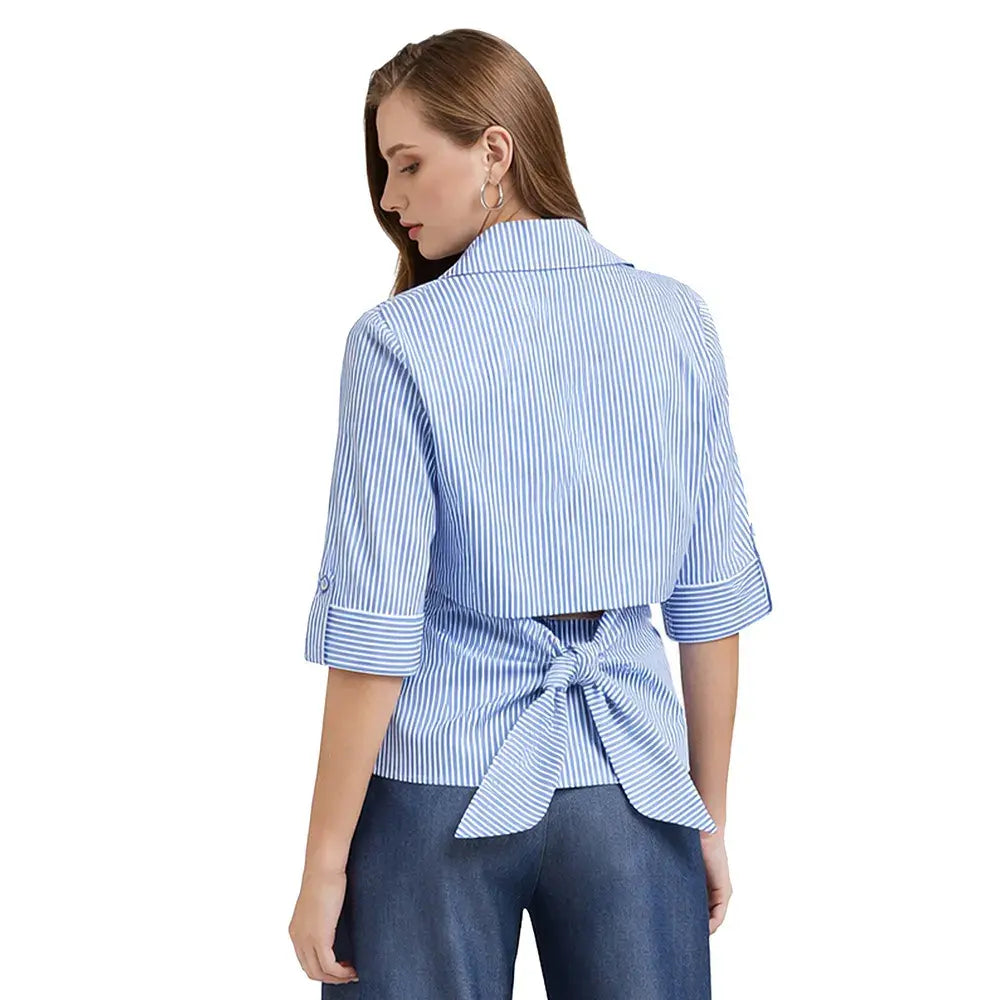 Blusa cuello ancho con botonadura oculta y moño en espalda