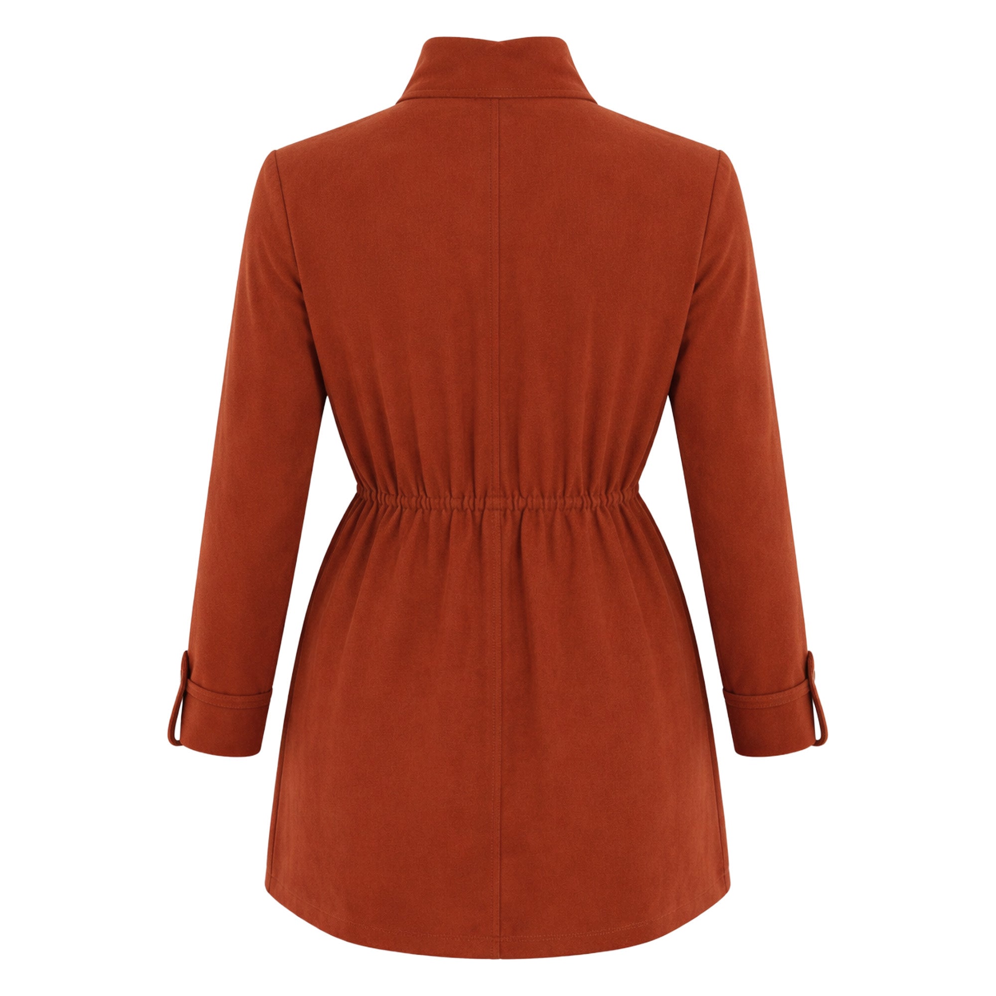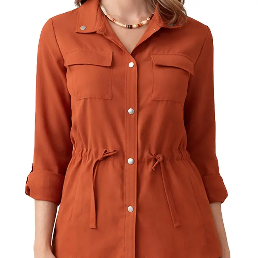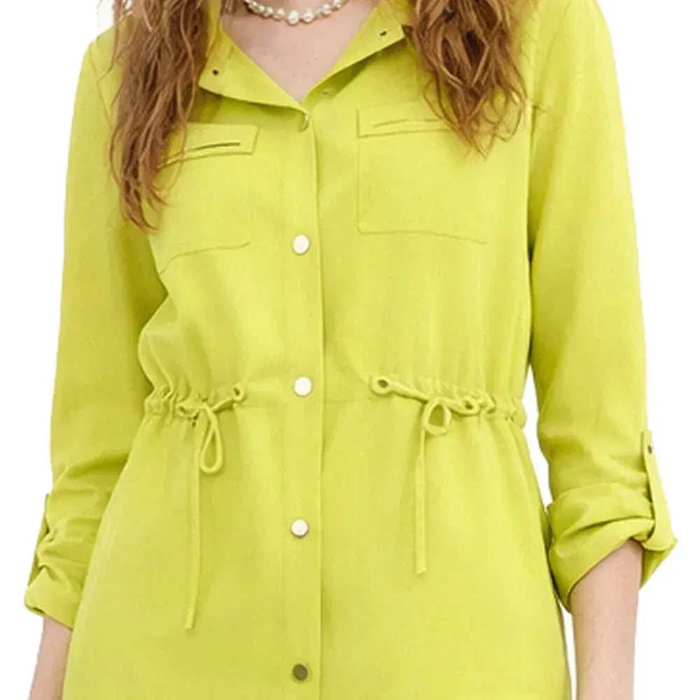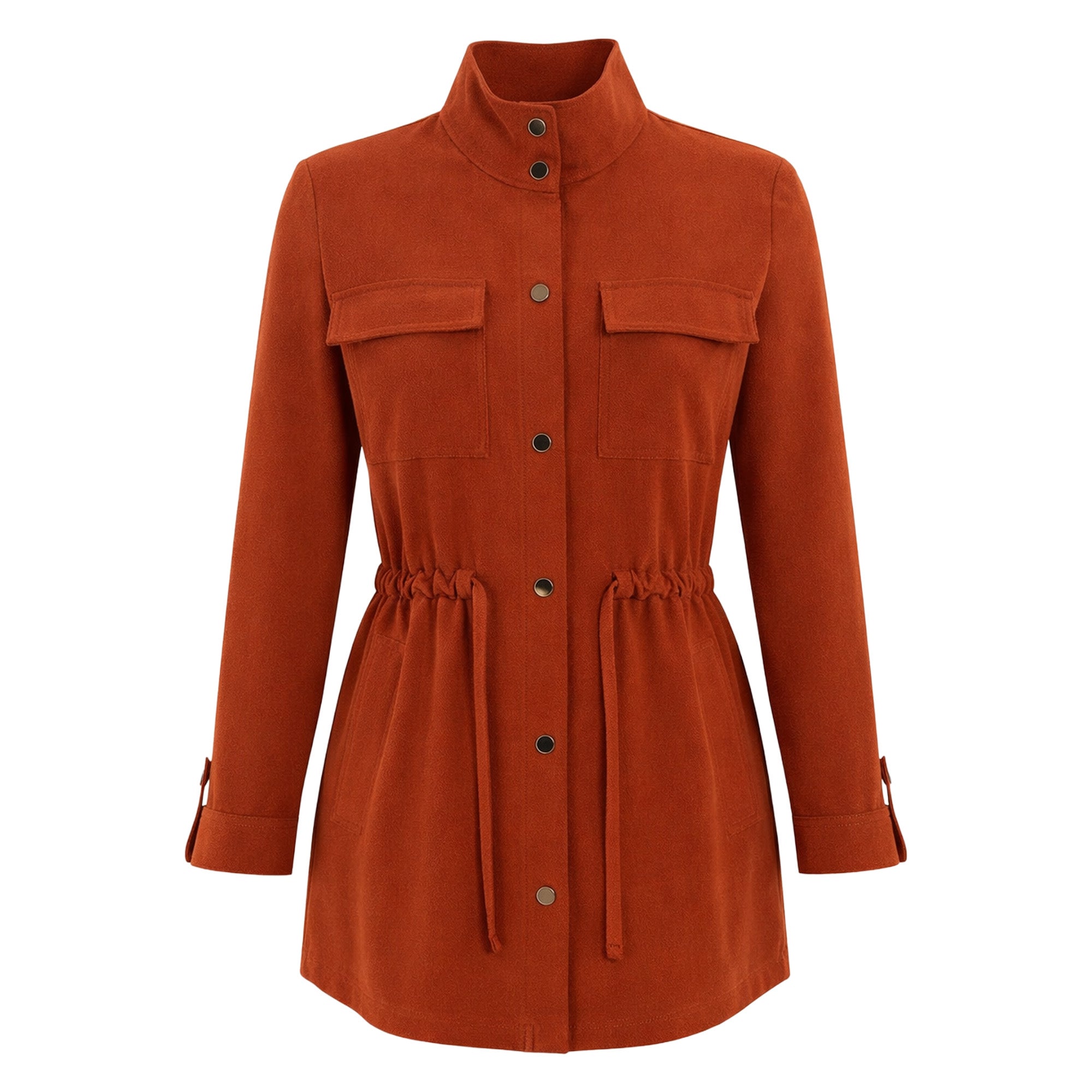 Diseñado para quienes buscan estructura con comodidad. El cuello alto aporta presencia, los broches frontales permiten cierre práctico y la jareta en cintura define silueta. Incluye bolsas de parche y elevador de manga, haciendo la pieza completamente funcional.