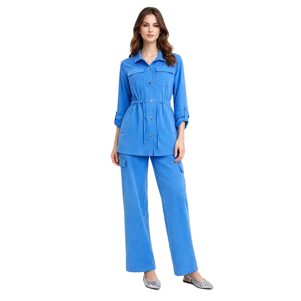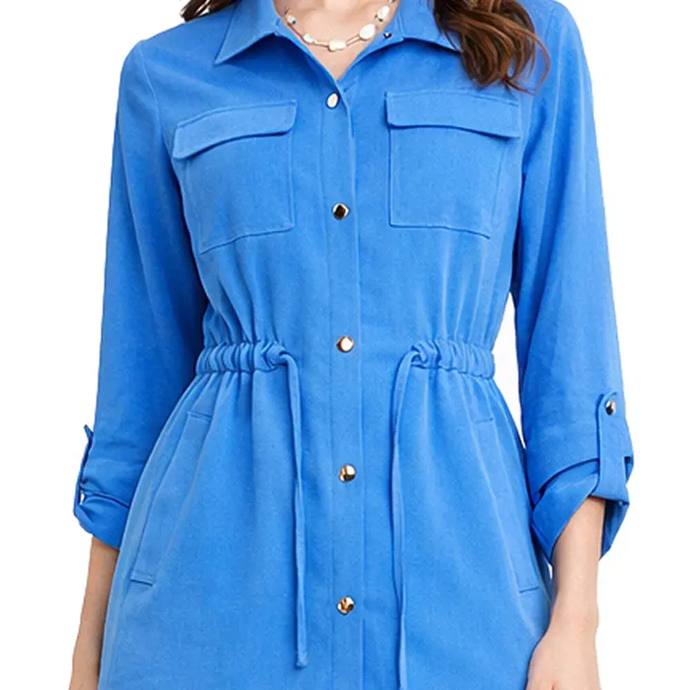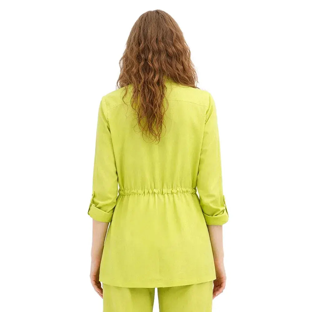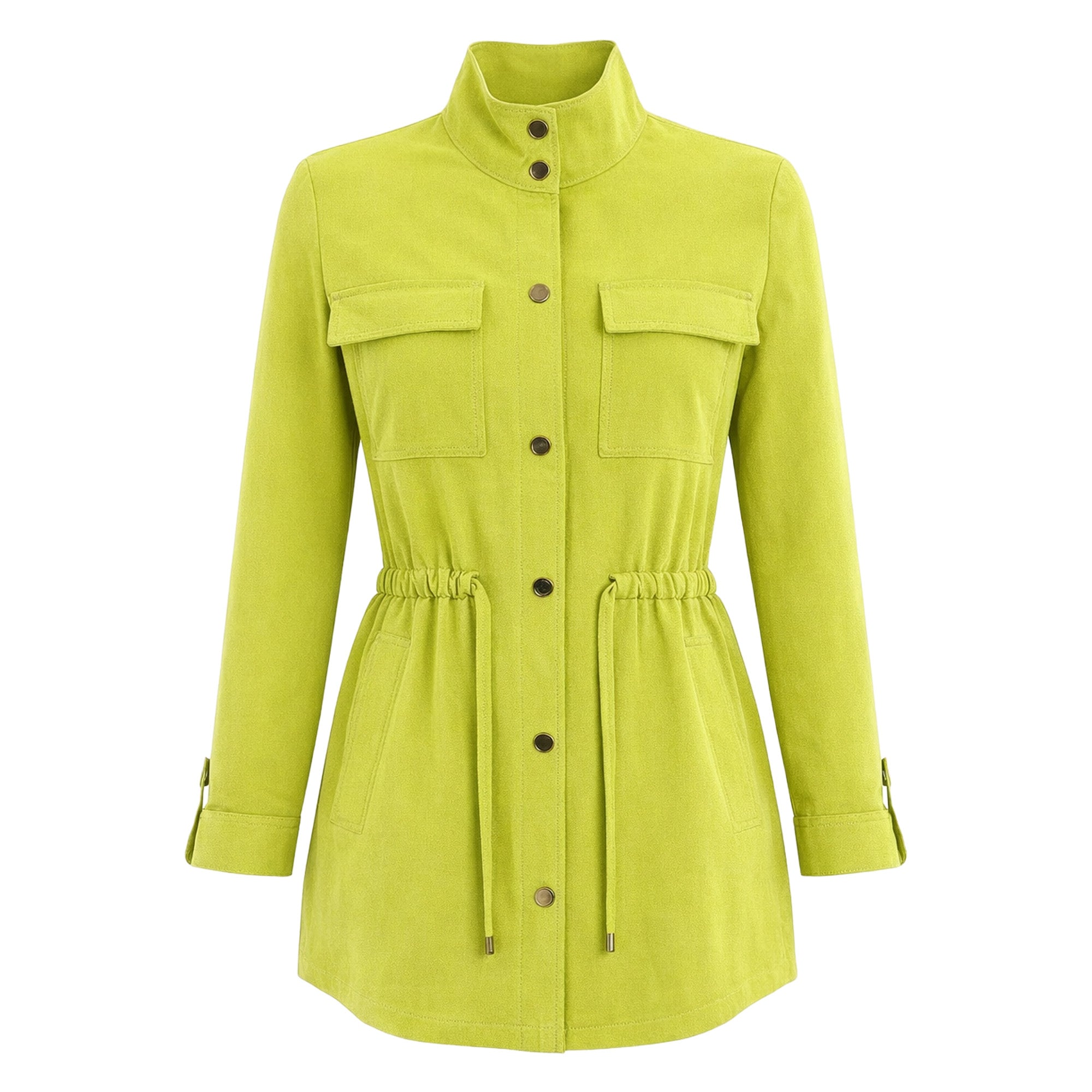 Diseñado para quienes buscan estructura con comodidad. El cuello alto aporta presencia, los broches frontales permiten cierre práctico y la jareta en cintura define silueta. Incluye bolsas de parche y elevador de manga, haciendo la pieza completamente funcional.